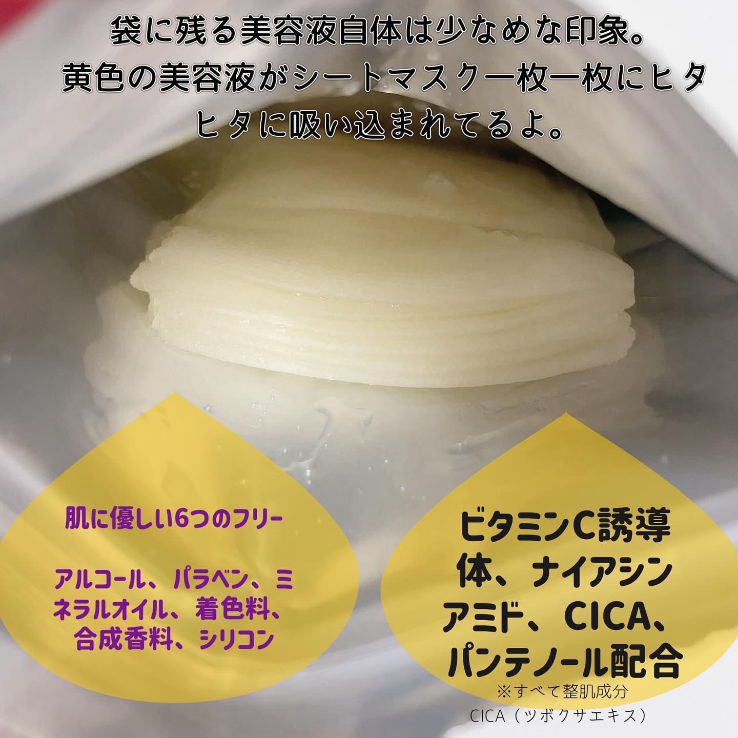 - 日韓で美容アワード12冠受賞の大人気「ビタペアC集中美容液」が7枚入りシートマスクに! 済州島産グリーンレモンウォーター*やナイアシンアミド4%(*1)、CICA成分(*2)を配合し毛穴・くすみ(*3)に集中アプローチする濃密ジェル美容液「ビタペアC集中美容液」。日韓併せて美容アワード12冠受賞のビタペアC集中美容液をシートマスクに仕上げました。簡単にビタペアC集中美容液でのスペシャルケアがかなうアイテムとなっています。シートは自然由来のキュプラ素材を採用しており、断面が丸く、肌との摩擦が起きにくいのが特長です。たっぷりと美容液を含んだ厚手のシートが心地よく肌に密着します。アルコール、パラベン、ミネラルオイル、着色料、合成香料、シリコンは無添加です。 <こんなときにおすすめ> ・いつもより肌にうるおいや透明感(*4)が欲しい ・簡単にスペシャルケアがしたい ・忙しい朝、早く眠りたい夜に * レモン果実エキス *2 ツボクサ葉水 *3 乾燥によって開いた毛穴とキメの乱れた肌印象のこと *4 うるおいを与えることによる肌印象のこと *-*2 全て保湿成分