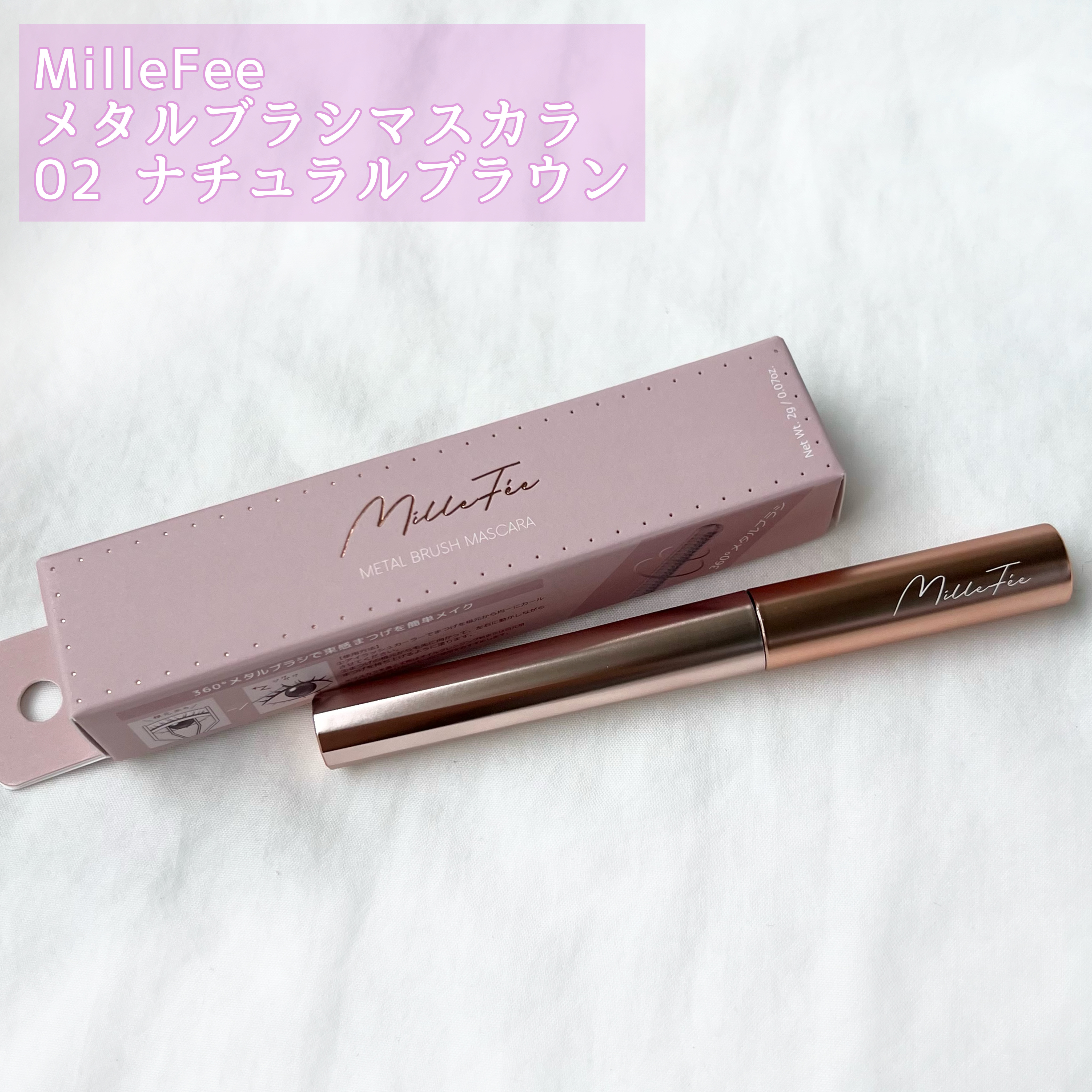 - 360°メタルブラシでまつげの毛流れを整えて、束感まつげを簡単メイク! 自まつげが伸びたように自然にロング&ボリュームアップし、美しい上向きまつげを長時間キープ! <メタルブラシで、長時間続く解けない魔法> ロングエクステファイバー配合でまるで長い自まつ毛のような仕上がり。 水・汗・こすれに強く、キープ力が持続して時間が経っても可愛い目元に。 ■メタルブラシのポイント 360°のメタルブラシに均一にマスカラ液が付く、MilleFéeのこだわり設計。 そのためまつ毛に塗りやすく、ダマになりにくく綺麗なセパレートまつ毛が簡単に完成します。 またマスカラ液にはファイバーを配合し、自然で長いまつ毛に見せてくれる効果も。