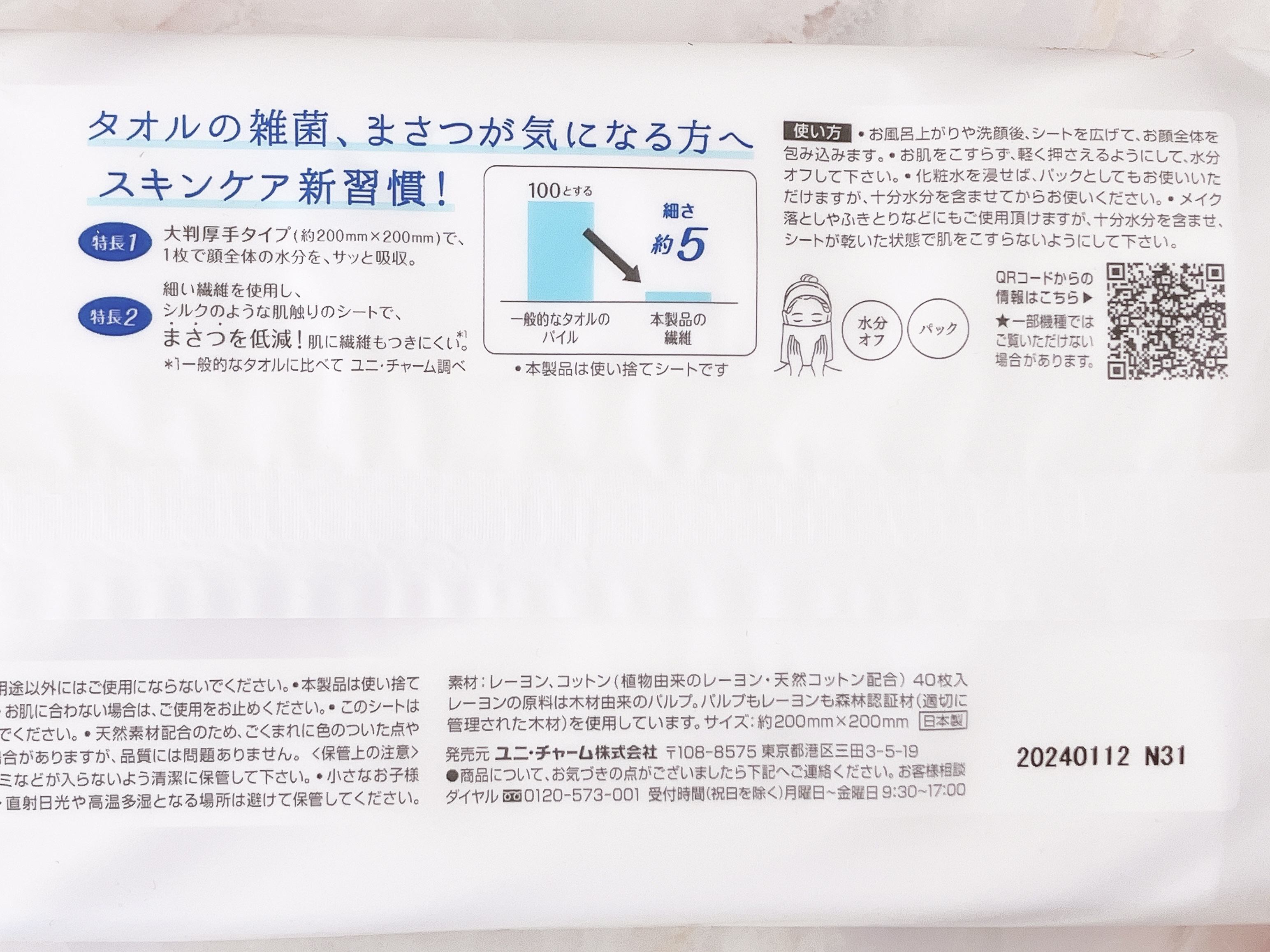 商品詳細情報シルコット シルコットフェイシャルタオル 素肌おもい プレミアム