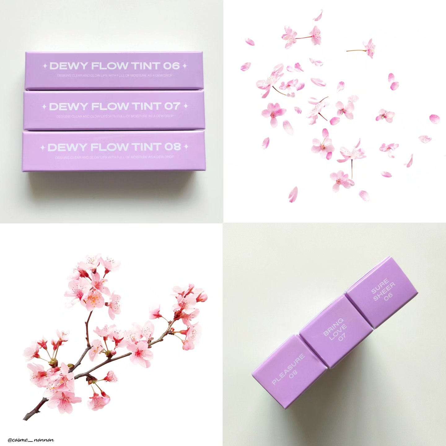 ✔ひと塗りで見たまま発色* 52%エッセンシャル成分配合で高保湿* にじみにくい* 塗布してから1分後に薄膜が形成されて時間が経つほど鮮やかな発色* 本来の唇のように自然な仕上がり* 飲食してもカラーが残る* レミユのデューイフロウティントはパケがとにかくCUTEで持っているだけで気分が上ります⤴🩷 ピンクブロッサムエディションはブルベ向きさんのカラーかな!?と思いましたが実際に塗ってみると3色とも顔から浮くこともなくとても可愛いぃ春爛漫カラーです🌸 52%エッセンシャル成分配合なので乾燥することがなく1日中うるつやな唇を演出してくれました🙆 06は白みピンクです 07、08も血色感と華やかさがあって可愛いぃです🐰 今の季節にぴったりなティントです🩷