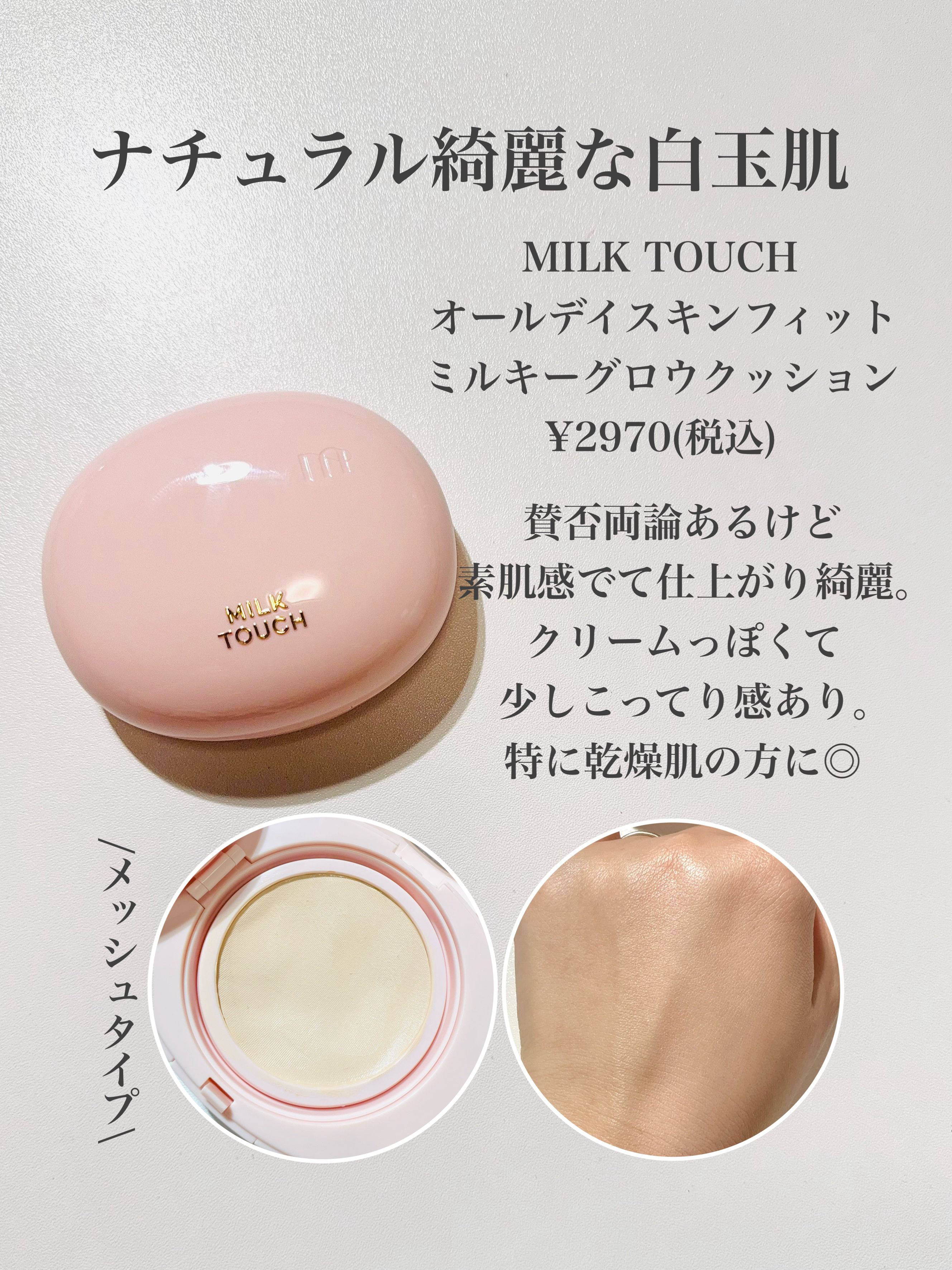 Milk Touch オールデイスキンフィットミルキーグロウクッション | 2,970円 |