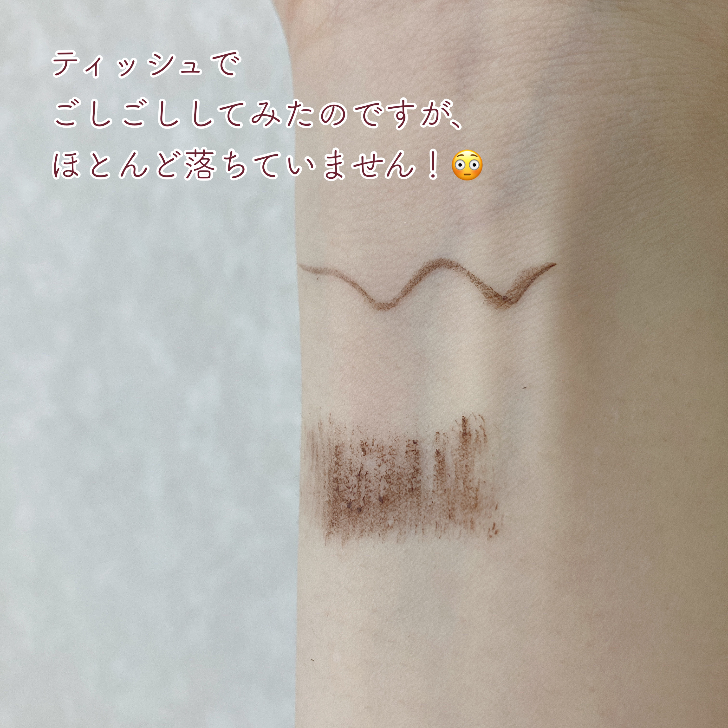極細0.1mmの筆先で滑らかで描きやすい¨̮⃝ 速乾でウォータープルーフなのもうれしい♡ 目幅に合わせたコンパクト設計のブラシがめちゃくちゃ使いやすいのー🤍 黒みの効いた抜け感あるブラウンが絶妙すぎる¨̮⃝ ダマにもなりにくくて頂いてから愛用してる😍