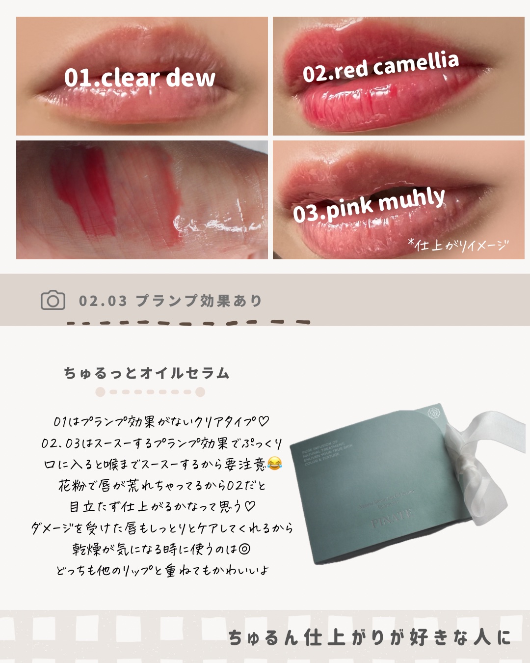 PINATE ナチュラルブルームリップオイルセラム 3色セット |