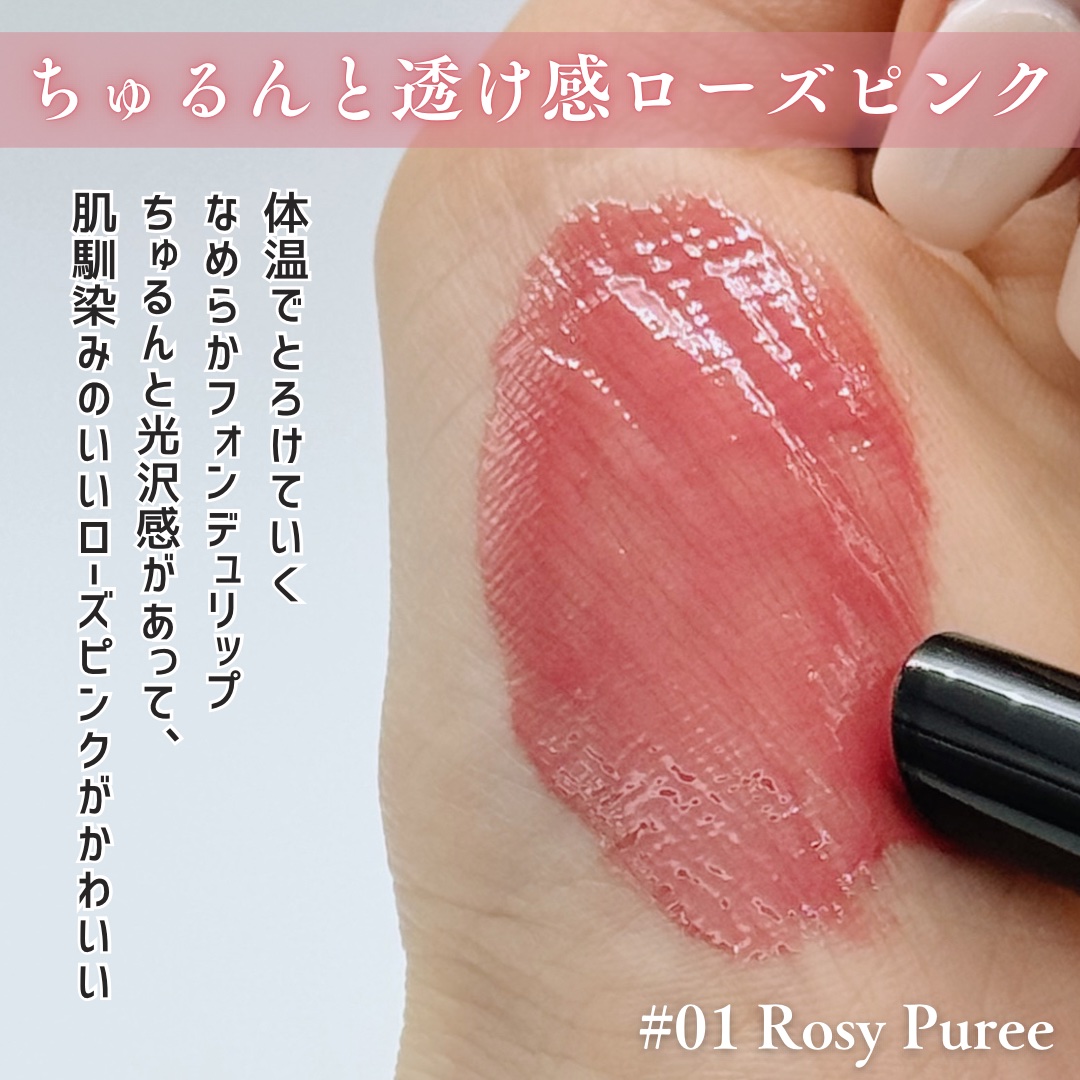 程よいスースー感のプランピングリップなとこも大好きなのですが、やっぱりこの《とぅるっ♪》と感は堪りません‼️ 《01 ローズピューレ》可愛らしいローズ感に可愛らしい苺感♡なんだけど、塗ると清楚ピュアになるとこが更にかわいいぃ~💗 苺とローズペタルのシロップ漬けみたいなカラーがハートを鷲掴みしてきます︎🫶🏻💕