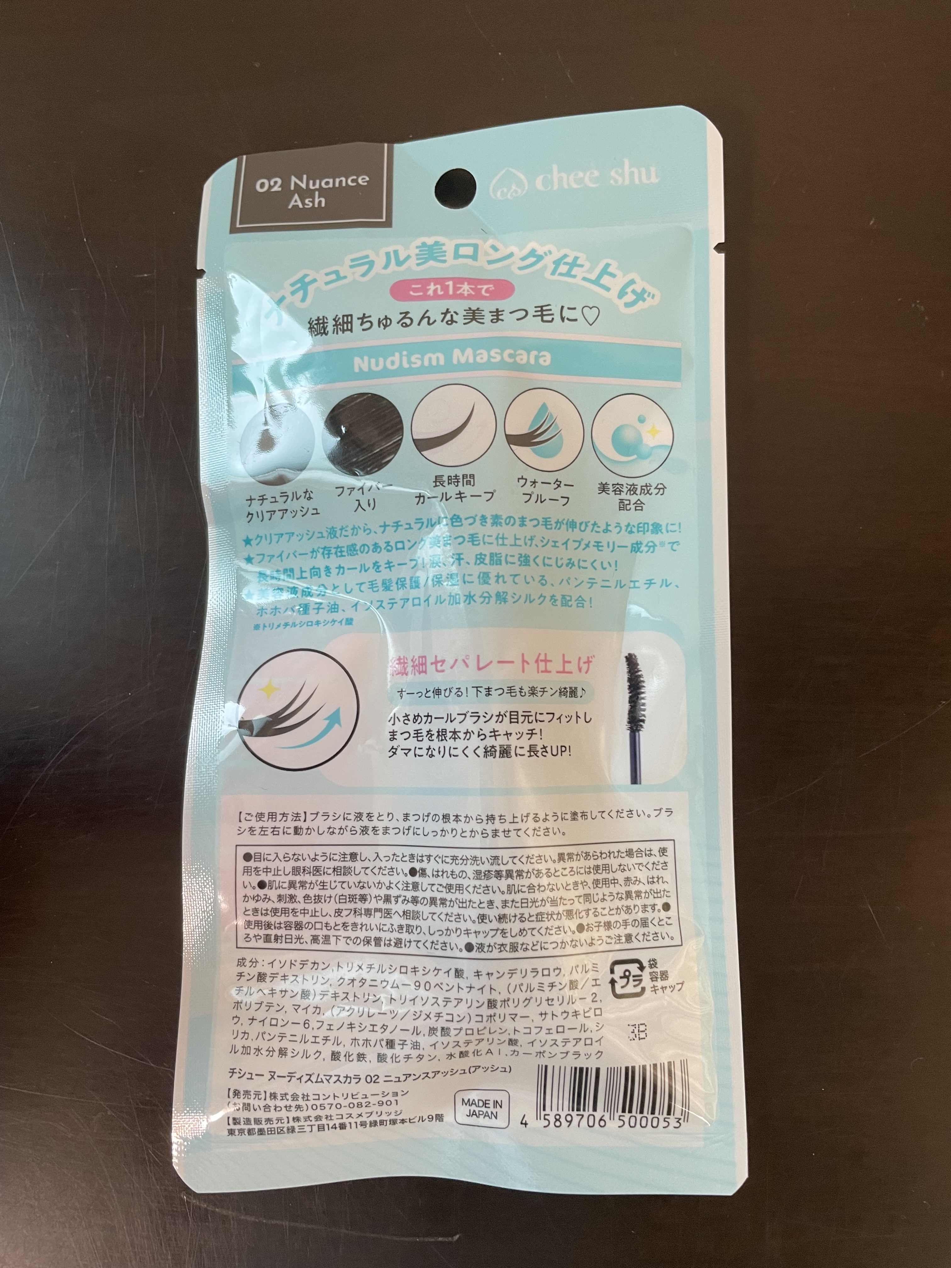 - 〇ナチュラルに色づき、素のまつ毛が伸びたような印象に 〇コンパクトなカールブラシ ~まつ毛を根本からキャッチし、シェイプメモリー成分*で長時間上向きカールをキープ~ *トリメチルシロキシケイ酸(皮膜形成剤として) 〇ウォータープルーフ ~涙、汗、皮脂に強くにじみにくい~ ☆美容液成分(毛髪保護/保湿)配合 パンテニルエチル、ホホバ種子油、イソステアロイル加水分解シルクを配合(添加剤として) <01 ピュアブラック(ブラック)> 軽やかなブラックがナチュラルに発色!目ヂカラUPでカールキープも叶えるすーっと伸びてキレイが続くロング&カールマスカラ。 <02 ニュアンスアッシュ(アッシュ)> グレーでもブラウンでもない絶妙な色味!抜け感まつ毛で繊細に魅せるすーっと伸びてキレイが続くロング&カールマスカラ。