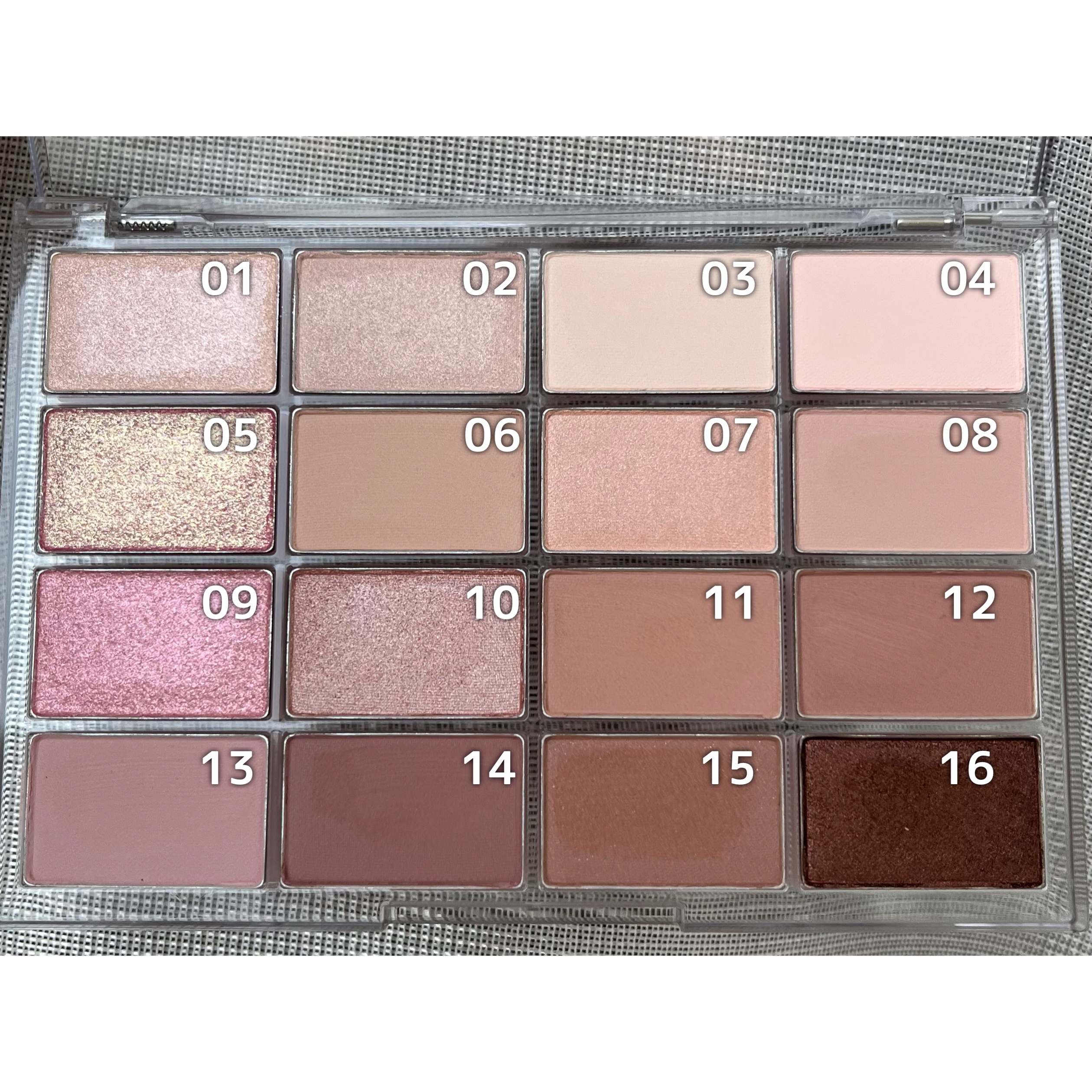 - 多彩なパーソナルカラーを基盤に作られたソフトブラーリングアイパレットで、16色を入れる事で、パレット1つでどんなメイクにもチャレンジできる形状が細長く持ち運びにも便利なパレット。 目元にやさしい使用感で広がり粉の飛び散りが少なく、しっかりと密着し染み込むように自然に馴染むテクスチャーが特徴。