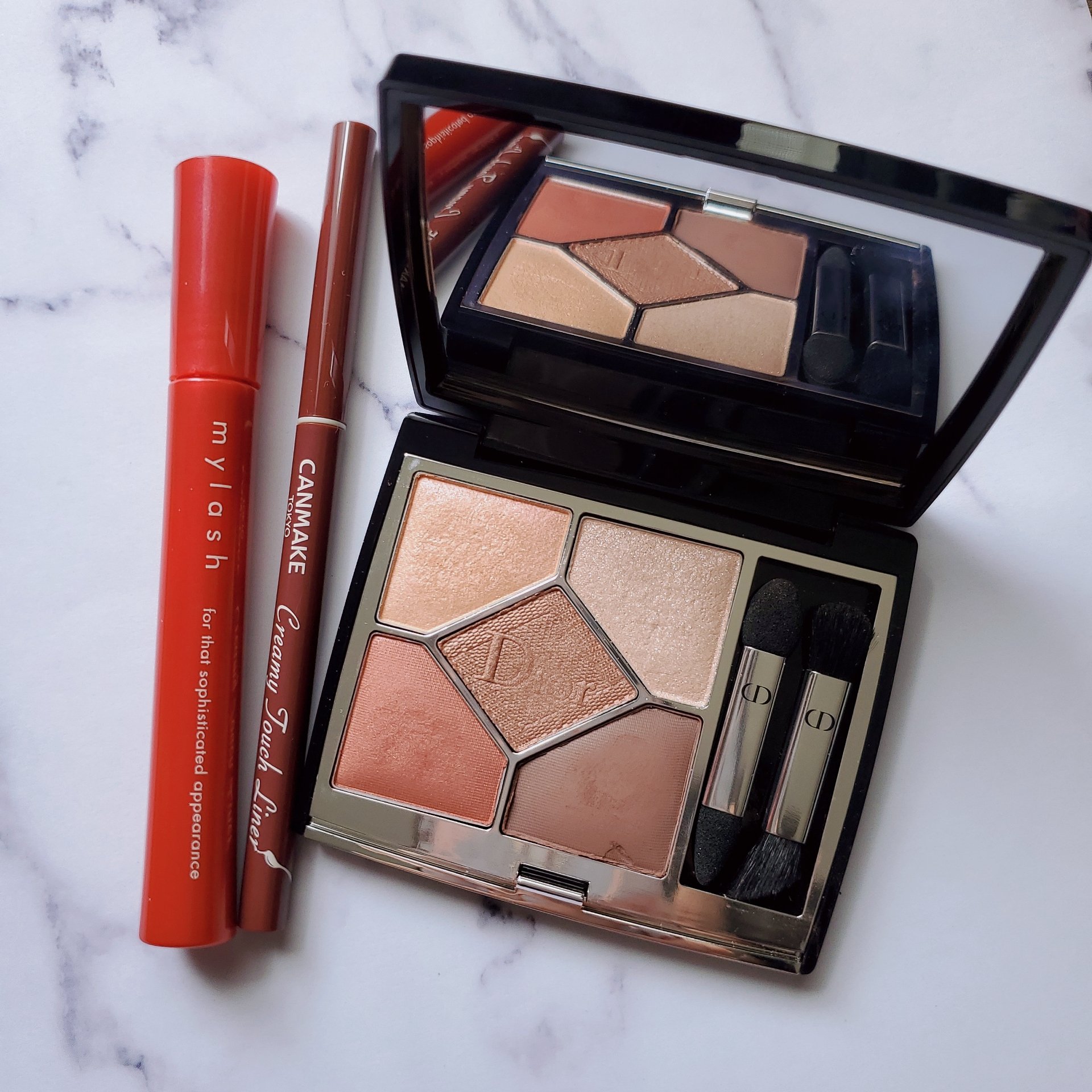 使いやすくて、購入してから毎日使ってます🥰🤍 こういうベージュ系のアイシャドウを持ってなかったので大好きなSUQQUから発売されて嬉しいです! ハイライトはDIORの左上と右下を混ぜて、 チークには右上のオレンジを使いました🍊! これはこれでいいな〜と意外に気に入ってます🫰🏻笑