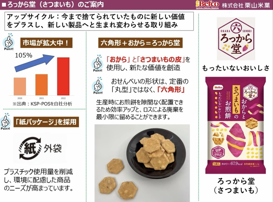 🍠🫘健康的なおやつはダイエット中にも良さそう🫘🍠ベフコ栗山米菓▶︎ろっから堂(さつまいも)おから+さつまいもの皮🍠今まで捨てられていたものを新しい製品へと生まれて変わらせるアップサイクルのお菓子です!やさしい甘さ、ざらめのおせんべいみたい。形...