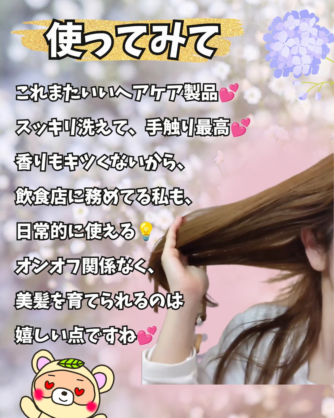 | ヘアケア・スタイリングランキング第9位 | 香りは甘いフローラル系🌸 華やかで明るくてすごくいい香り | 詳細を見る |