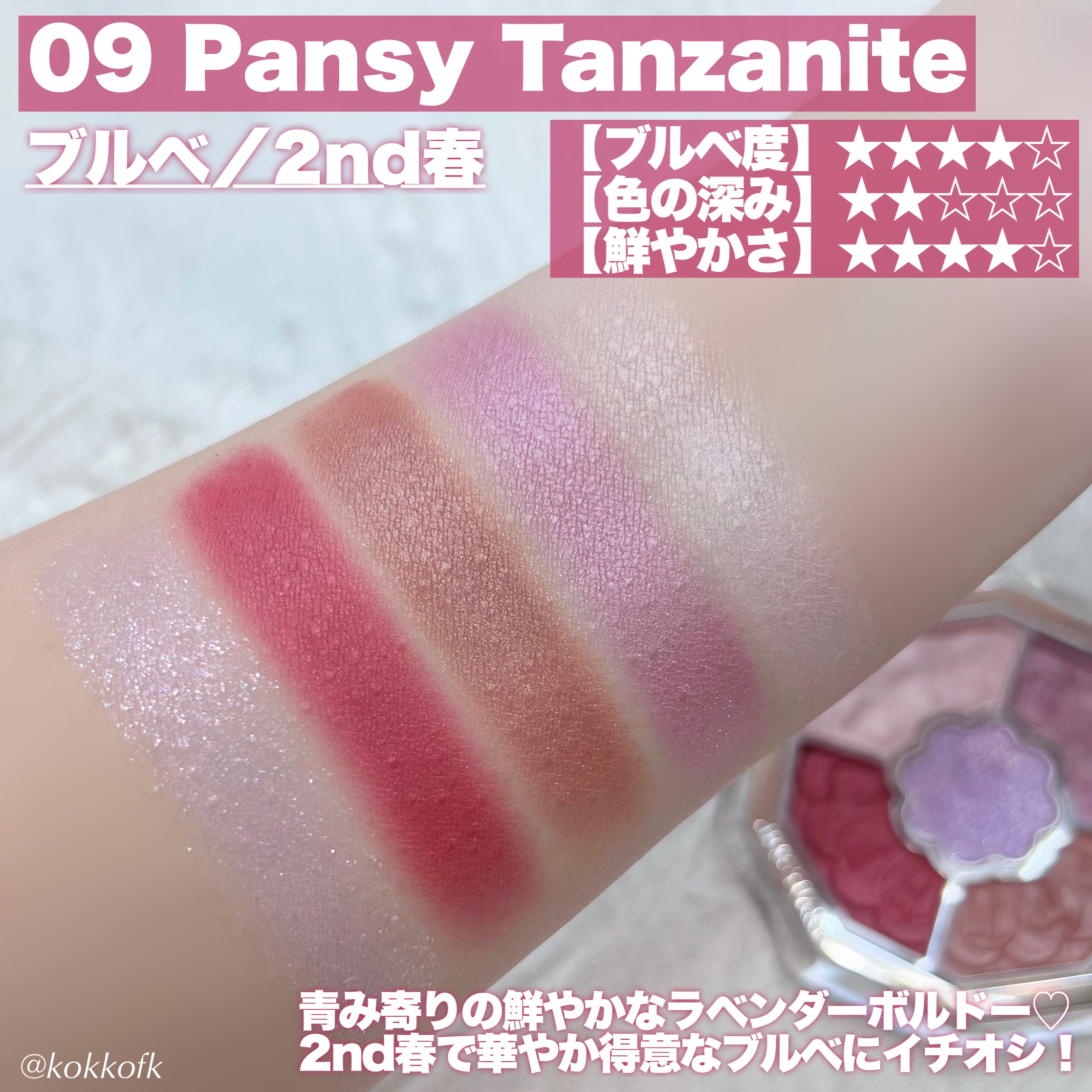 - <01 cymbidium cameo> ジメチコン、タルク、トリエチルヘキサノイン、ホウケイ酸(Ca/Al)、リンゴ酸ジイソステアリル、ラウロイルリシン、ダイマージリノール酸(フィトステリル/イソステアリル/セチル/ステアリル/ベヘニル)、(HDI/PPG/ポリカプロラクトン)クロスポリマー、メタクリル酸メチルクロスポリマー、トリメリト酸トリトリデシル、ステアロイルオキシステアリン酸オクチルドデシル、シリカ、ミネラルオイル、アボカド油、アンズ核油、トコフェロール、ラベンダー油、ローズマリー葉エキス、BHT、(ジメチコン/ビニルジメチコン)クロスポリマー、(ビニルジメチコン/ラウリルジメチコン)クロスポリマー、アモジメチコン、アルミナ、イソドデカン、エチルヘキサン酸セチル、エチルヘキシルグリセリン、オクチルドデカノール、ステアリン酸Mg、ステアリン酸オクチルドデシル、セスキイソステアリン酸ソルビタン、トリエトキシカプリリルシラン、ナイロン-12、ヘキサ(ヒドロキシステアリン酸/ステアリン酸/ロジン酸)ジペンタエリスリチル、ポリメタクリル酸メチル、ワセリン、合成フルオロフロゴパイト、酸化スズ、水酸化Al、水添ポリイソブテン、クロルフェネシン、香料、グンジョウ、コンジョウ、マイカ、酸化チタン、酸化亜鉛、酸化鉄、硫酸Ba、黄4、赤226 <02 viola amethyst> タルク、ジメチコン、トリエチルヘキサノイン、ホウケイ酸(Ca/Al)、リンゴ酸ジイソステアリル、ラウロイルリシン、ダイマージリノール酸(フィトステリル/イソステアリル/セチル/ステアリル/ベヘニル)、(HDI/PPG/ポリカプロラクトン)クロスポリマー、メタクリル酸メチルクロスポリマー、トリメリト酸トリトリデシル、ステアロイルオキシステアリン酸オクチルドデシル、ミネラルオイル、シリカ、アボカド油、アンズ核油、トコフェロール、ラベンダー油、ローズマリー葉エキス、BHT、(ジメチコン/ビニルジメチコン)クロスポリマー、(ビニルジメチコン/ラウリルジメチコン)クロスポリマー、アモジメチコン、イソドデカン、エチルヘキサン酸セチル、エチルヘキシルグリセリン、オクチルドデカノール、ステアリン酸Mg、ステアリン酸オクチルドデシル、セスキイソステアリン酸ソルビタン、トリエトキシカプリリルシラン、ナイロン-12、ヘキサ(ヒドロキシステアリン酸/ステアリン酸/ロジン酸)ジペンタエリスリチル、ホウケイ酸(Ca/Na)、ポリメタクリル酸メチル、ワセリン、合成フルオロフロゴパイト、酸化スズ、水酸化Al、水添ポリイソブテン、クロルフェネシン、香料、(PET/ポリメタクリル酸メチル)ラミネート、グンジョウ、マイカ、酸化チタン、酸化亜鉛、酸化鉄、赤226 <03 daisy topaz> タルク、ジメチコン、トリエチルヘキサノイン、ホウケイ酸(Ca/Al)、リンゴ酸ジイソステアリル、ラウロイルリシン、ダイマージリノール酸(フィトステリル/イソステアリル/セチル/ステアリル/ベヘニル)、(HDI/PPG/ポリカプロラクトン)クロスポリマー、メタクリル酸メチルクロスポリマー、トリメリト酸トリトリデシル、ステアロイルオキシステアリン酸オクチルドデシル、ミネラルオイル、アボカド油、アンズ核油、トコフェロール、ラベンダー油、ローズマリー葉エキス、BHT、(ジメチコン/ビニルジメチコン)クロスポリマー、(ビニルジメチコン/ラウリルジメチコン)クロスポリマー、アモジメチコン、イソドデカン、エチルヘキサン酸セチル、エチルヘキシルグリセリン、オクチルドデカノール、シリカ、ステアリン酸Mg、ステアリン酸オクチルドデシル、セスキイソステアリン酸ソルビタン、トリエトキシカプリリルシラン、ナイロン-12、ヘキサ(ヒドロキシステアリン酸/ステアリン酸/ロジン酸)ジペンタエリスリチル、ポリメタクリル酸メチル、ワセリン、合成フルオロフロゴパイト、酸化スズ、水酸化Al、水添ポリイソブテン、クロルフェネシン、香料、グンジョウ、マイカ、酸化チタン、酸化亜鉛、酸化鉄、黄4、赤226 <04 calandiva garnet> タルク、ジメチコン、トリエチルヘキサノイン、ホウケイ酸(Ca/Al)、リンゴ酸ジイソステアリル、ラウロイルリシン、ダイマージリノール酸(フィトステリル/イソステアリル/セチル/ステアリル/ベヘニル)、(HDI/PPG/ポリカプロラクトン)クロスポリマー、メタクリル酸メチルクロスポリマー、ホウケイ酸(Ca/チタン)、トリメリト酸トリトリデシル、シリカ、ステアロイルオキシステアリン酸オクチルドデシル、合成フルオロフロゴパイト、ミネラルオイル、ホウケイ酸(Ca/Na)、アボカド油、アンズ核油、トコフェロール、ラベンダー油、ローズマリー葉エキス、BHT、(ジメチコン/ビニルジメチコン)クロスポリマー、(ビニルジメチコン/ラウリルジメチコン)クロスポリマー、アモジメチコン、イソドデカン、エチルヘキサン酸セチル、エチルヘキシルグリセリン、オクチルドデカノール、ステアリン酸Mg、ステアリン酸オクチルドデシル、セスキイソステアリン酸ソルビタン、トリエトキシカプリリルシラン、ナイロン-12、ヘキサ(ヒ