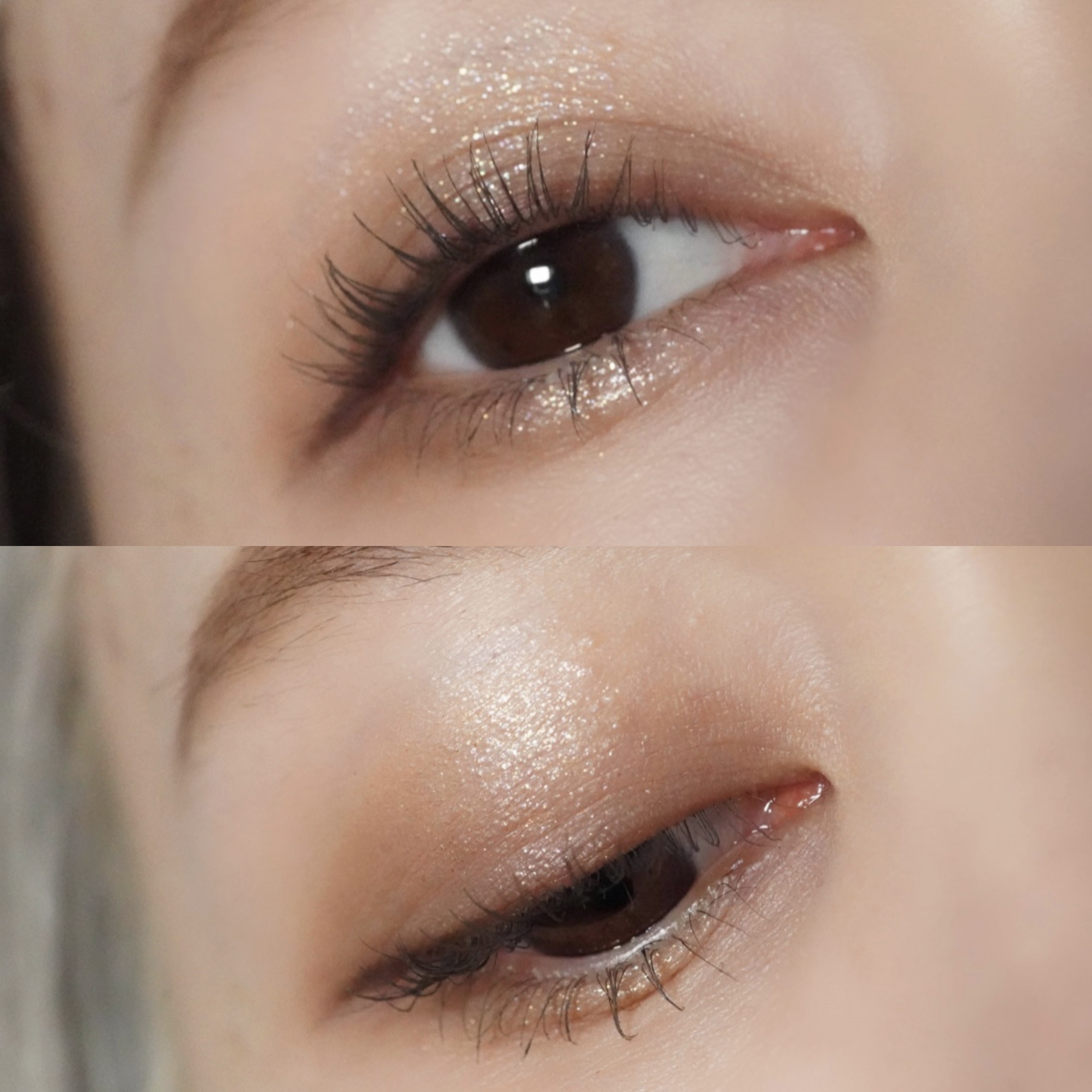 よくパレットのなかで明るいカラーをベースにまぶたに広く塗ることが多いのですが、パール感のあるカラーを避ける🙆♀️! パール感たっぷりの明るいカラーは涙袋に使うぐらい光を集めてぷっくり見せてくれるので、まぶたに広く使うと腫れぼったく見えがち😓 目元を明るくみせてくれたり、次に使うアイシャドウをぼかしやすくしてくれるけど、すっ飛ばしてメインのカラーを塗っちゃう✊🏻❤️🔥 涙袋にはたっぷり塗ってぷっくり見せる🙆♀️💕 シルキースフレアイズのマットタイプはすごく優れているな〜と感じました☺️💗 赤やオレンジなどは、入れすぎると腫れぼったく見えやすいので、見せたいカラーは下まぶた目尻にのせて色をたのしむ♡♡ パール感なしの透けマットだけじゃ物足りない… そう感じさせない華やかなラメが左上に入っているので黒目上と涙袋にのせるとすごく可愛い仕上がりに😍! 厄介な左右差のお陰でマットアイシャドウが好きになりました😌💕