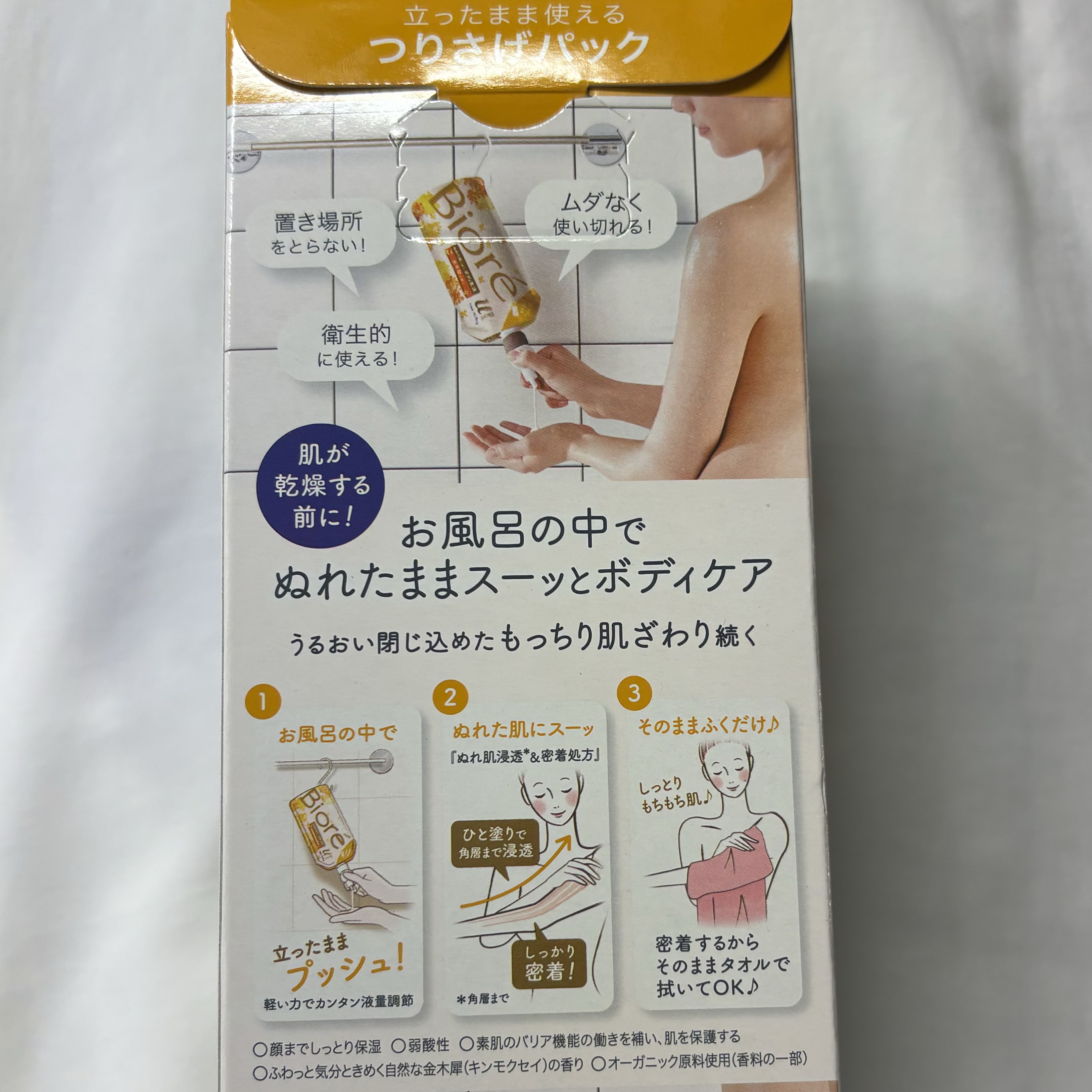 - 肌が乾燥する前に、お風呂の中でぬれたままスーッと一気にボディケア! うるおい閉じ込めたもっちり肌ざわり続く。 お風呂の中でつりさげて、立ったまま使えるつりさげパックは、置き場所をとらず、衛生的に、ムダなく使い切れる。 軽い力でカンタン液量調整できる、らくらくスイッチ採用。 ○顔までしっとり保湿 〇弱酸性 ○素肌のバリア機能の働きを補い、肌を保護する ○金木犀の香り 2023年9月9日『ビオレu ザ ボディ ぬれた肌に使うボディ乳液 金木犀の香り』は、年間を通じてご購入いただける定番品として新発売