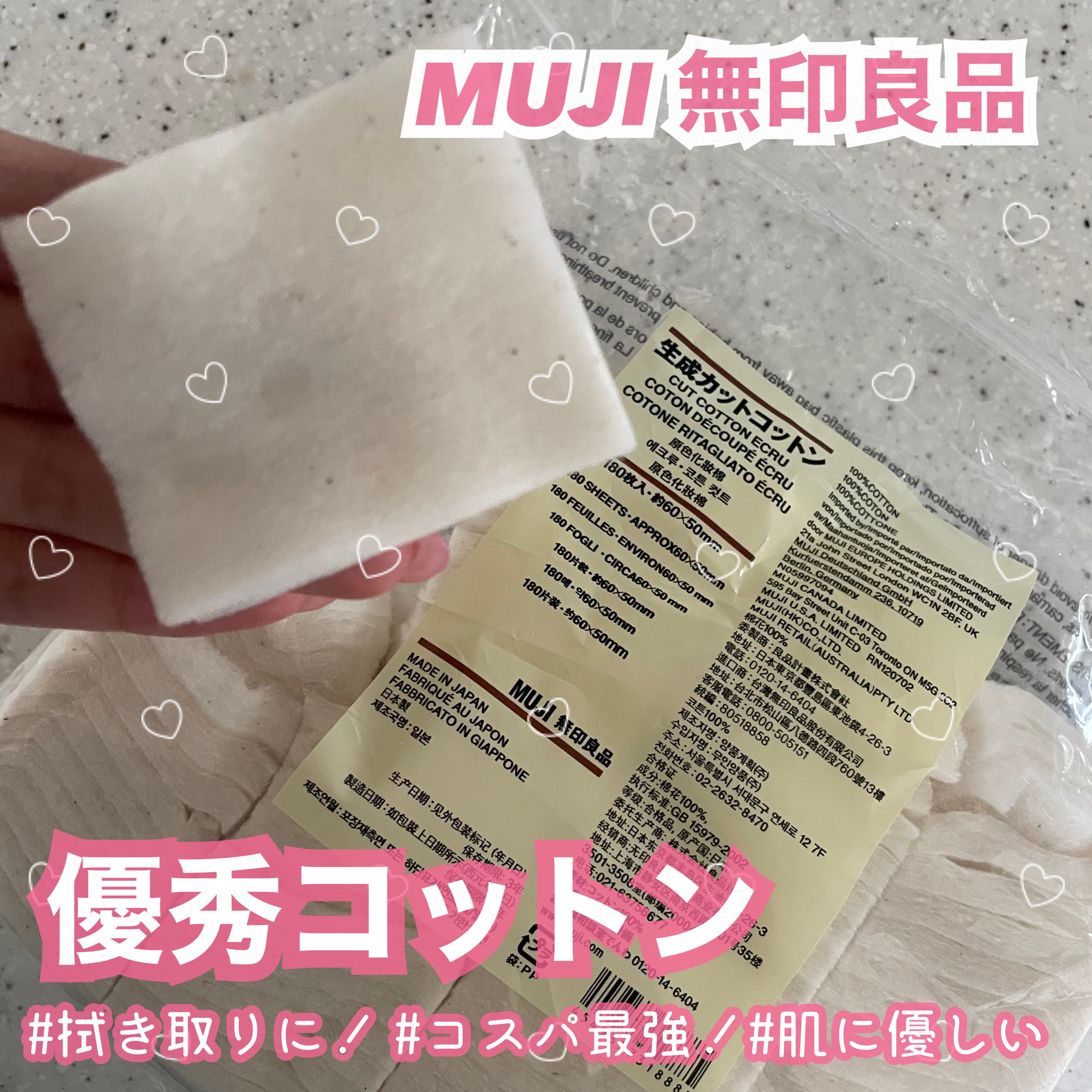 無印良品生成カットコットン180枚299円100円値上がりしてた(⸝⸝⸝ᵒ̴̶̷̥́⌑ᵒ̴̶̷̣̥̀⸝⸝⸝)でも柔らかいし、毛羽立たないし、コスパいい(*´ω`*)メイク落とし用に買ったけど、スキンケアでもどちらでも使えそう(*´ч`*)透明...