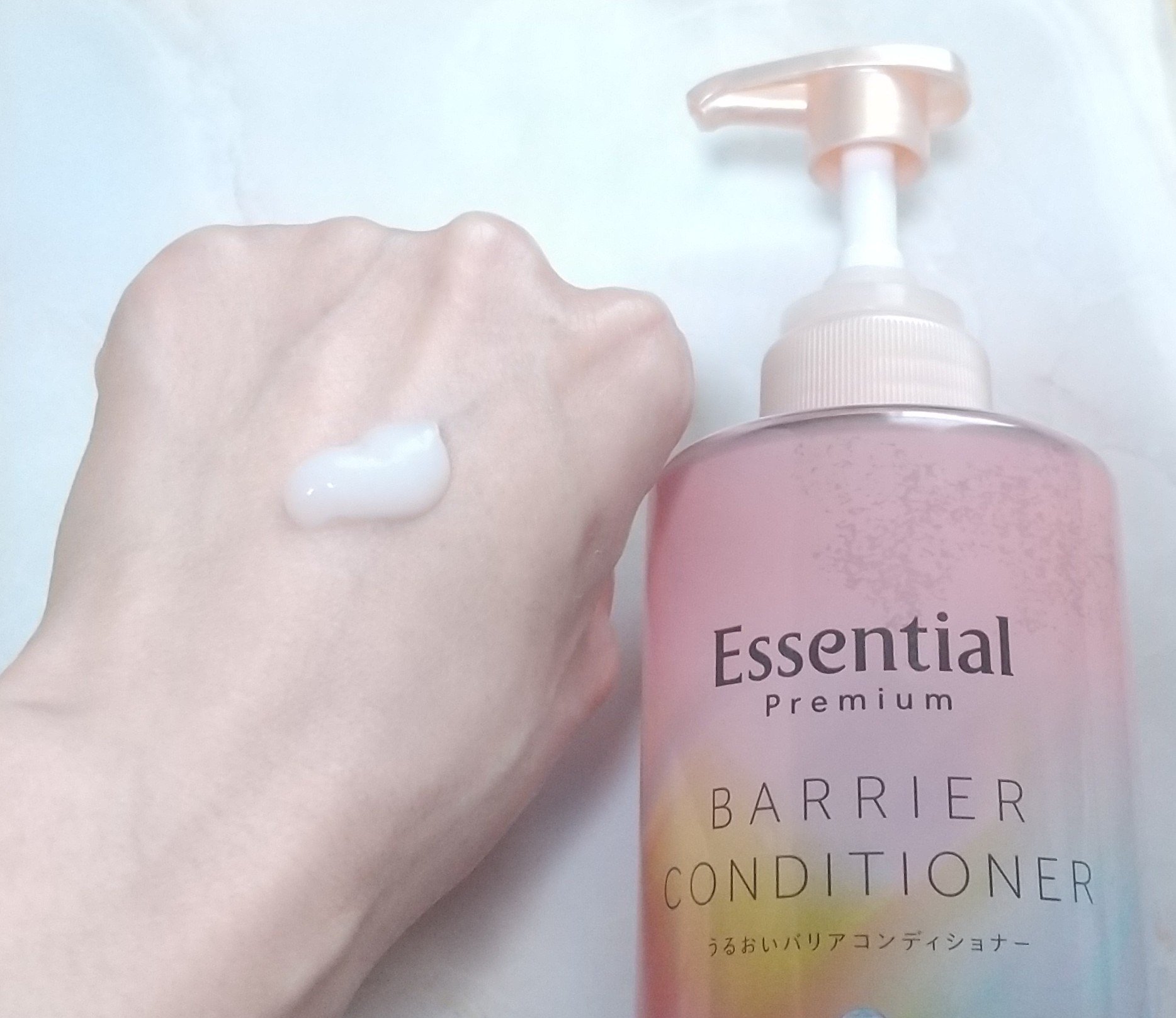 エッセンシャルプレミアムバリアシャンプー・コンディショナーシルキー&スムース〈説明〉・シャンプー・コンディショナー・450ml(両方とも)〈感想〉ホワイトピーチ&ムスクの香りは良い匂いで良かったです。シャンプーの洗浄力には私的には満足しました...