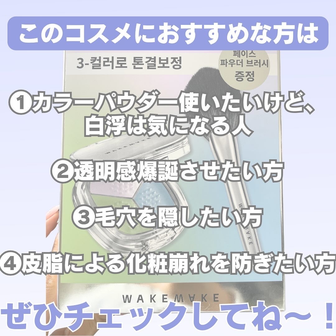 5色のカラー顔のくすみを一掃できるというところ✨ しかもカバーパウダー配合で、お顔の凹凸を目立ちにくくすることができます。 艶感も美しく、繊細なパールがお顔のトーンをあげてくれます🩷 気になる点はテカリとトーンアップのしすぎなので、それは随時テカリを抑えられるベースメイクをしたり、パウダーでトーンアップすることを考えた上でトーンを下げたベースメイクをすること、パウダーを塗布する量を調整するなどと工夫した方が良いです😊
