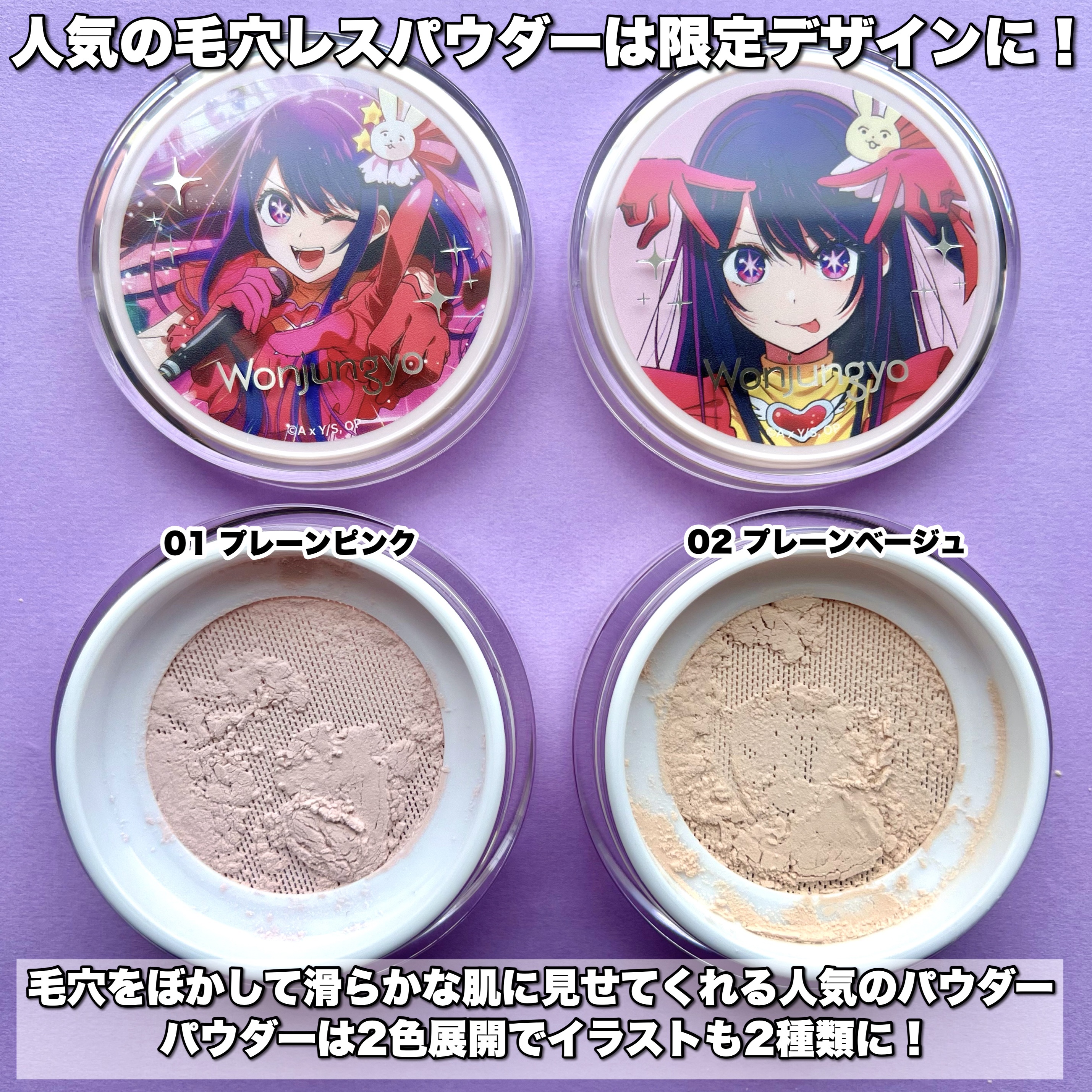 私の超お気に入り一番星コスメ💫 Wonjungyoウォンジョンヨ 『【推しの子】』という漫画に登場するキャラクター、'アイ'がモチーフになった今回のパケ♡ サラッサラッに仕上がる上に、毛穴もぼかしてくれてふんわり肌に仕上がる!