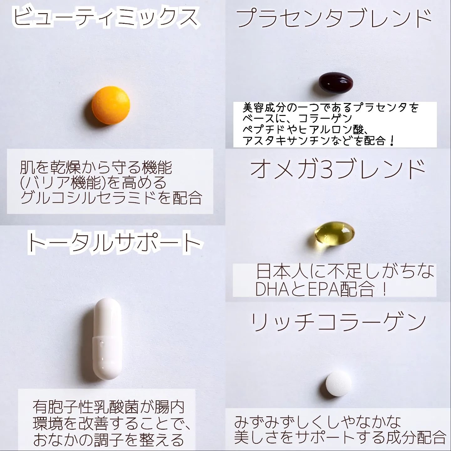 - パーソナライズサプリメント「FUJIMI(フジミ)」は美容分析で20問程度の設問を通じて回答者の状態を分析。分析結果は2,000億通り。アスタキサンチンやコラーゲン、フィッシュオイル、プラセンタなどのオリジナルのサプリメント11種類から「あなただけの5粒」をセレクトし、あなたに合った「飲むビューティーケア」を提案します。