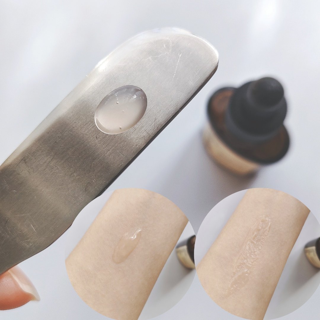 まるで懐かしい景色を閉じ込めた、タイムカプセルのような美しい2層の美容液オイル。 素敵なイラストの箱を開けていくのも楽しくわくわくしてしまいました。 ピンクのグラデーションがとても綺麗なオイルです。 オイル層と美容液層の比率が5:5のしっとりタイプ。 2層式なのでよく振ってから使います。混ざると優しいベビーピンクに。 ほんのりとろみのあるテクスチャー。重さを感じないオイルでさらっと心地よく使えます。 陽だまりの花と果実の香りは甘すぎないフローラル系でとても優しい香りです。