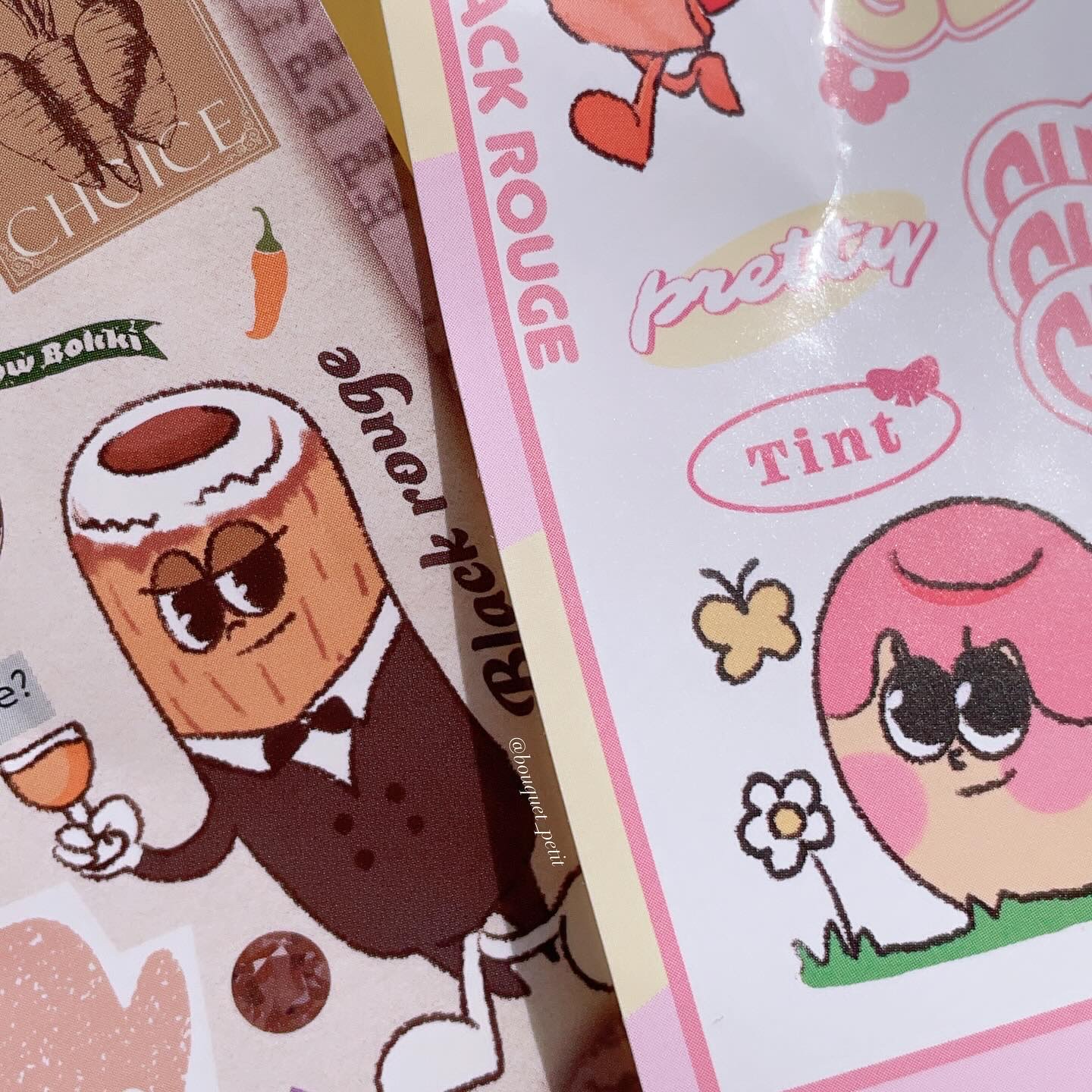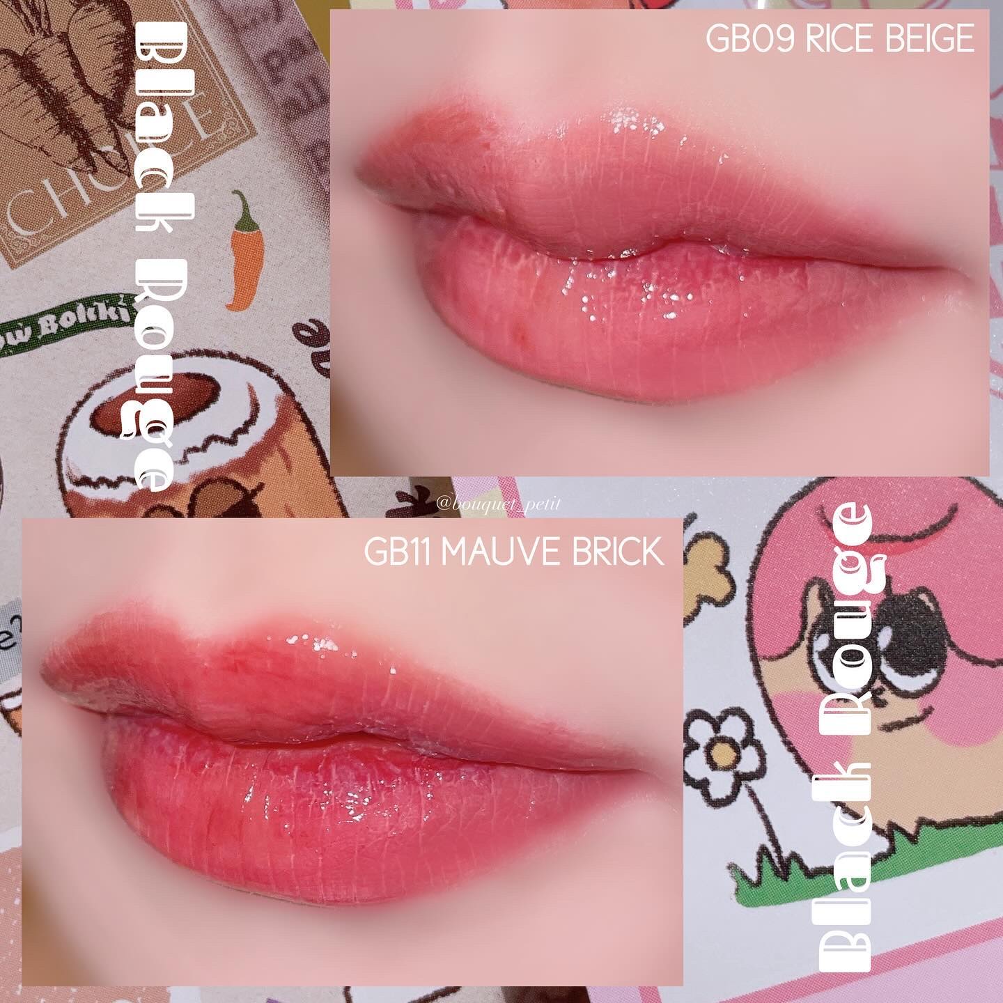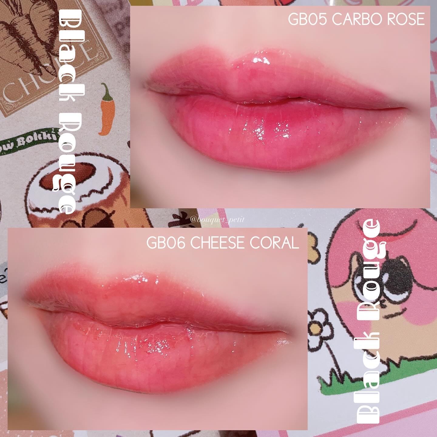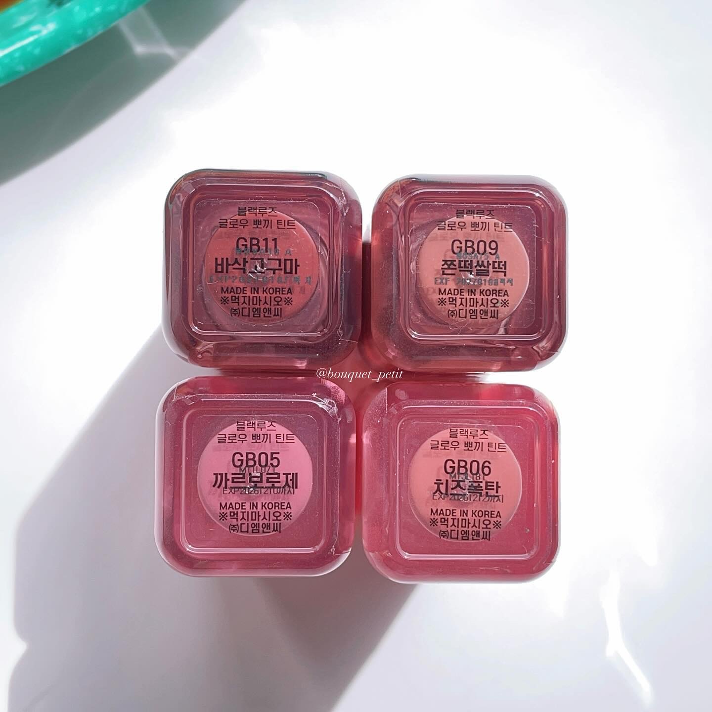 - 確実な差別化戦略で韓国の人気の食べ物であるトッポッキからインスピレーションを受け、輝くツヤと濃いカラーを具現したリップティント カラーとテクスチャーだけではなく、商品名からもブラックルージュのコンセプトを垣間見ることができるが、オリジナル、ロゼ、ソイのようなソースカラーでレッド、ピンク、ブラウン系を区分し、その中に4種類ずつ材料の名前で商品名つけています。