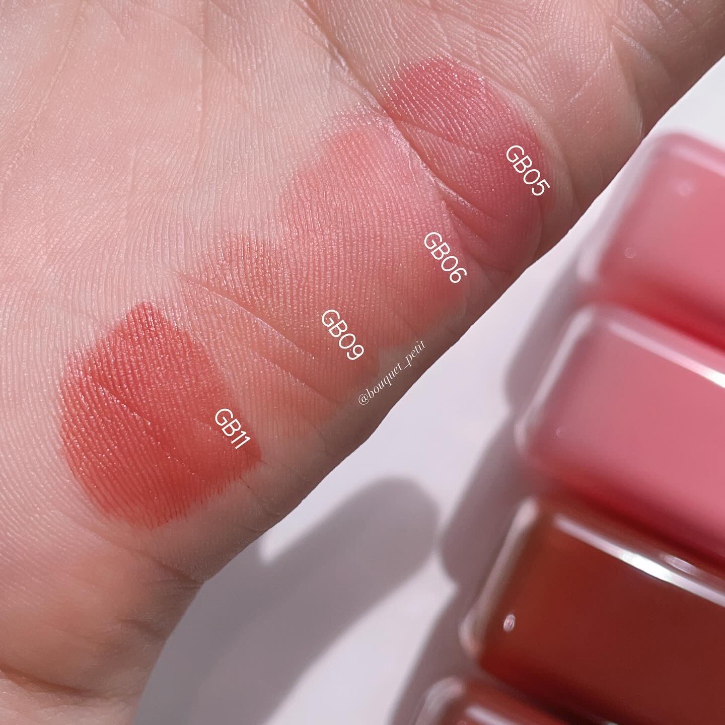 バレリーナ・ラナンキュラスがピンク系、 サーモングロー・サーモンピンクがオレンジまたはコーラル系。 サーモングローはTHE夏カラーのコーラルオレンジ! くすみがなく元気でクリアな印象に。 オールザットヌードは、ハイライターとして。 鼻筋にスッと入れるのが好きです。