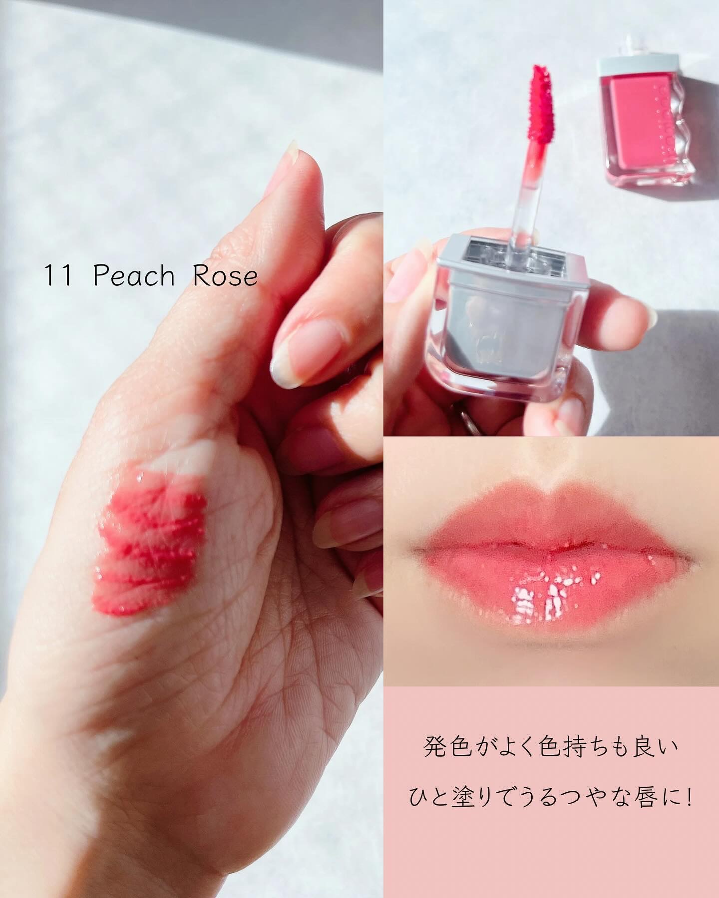 深みがあって秋冬に使いたくなる色味💋 塗り立てはガラス玉発色でうるつや~🩷🤍 ティッシュオフ後、色もち良くてパサパサ感もなく見た目のうるおいも程よく残ってる✨ イエベでも顔に浮くことなく違和感ない色味だった❣️ 特に14.15あたりはむしろドンピシャな気がする✨
