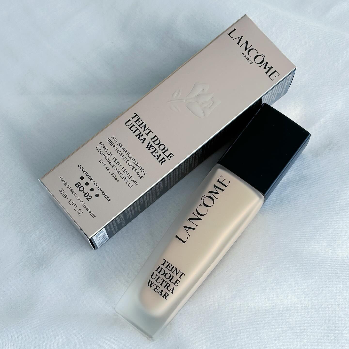 セミマット仕上がりが美しい!ランコムのファンデーション💄✨ 肌に溶け込むような自然な仕上がりで、毛穴や赤みをしっかりカバーしつつ厚塗り感ゼロ👌 少量でも伸びが良く、半プッシュで全顔いけるほど! 乾きが速いので、半顔ずつ仕上げるのがおすすめです。 BO-02は黄みが強めのベージュで、赤みが気になる肌にも自然に馴染みますが、少し暗めなので普段のファンデよりワントーン明るめを選ぶと良さそうです。