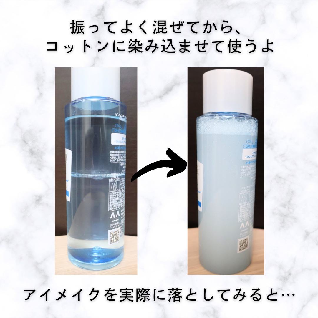 このリムーバー【すご落ち】!!! ビフェスタ のミセラーアイメイクアップリムーバー使って感動しました!🕊️ ウォータープルーフのマスカラやアイライナー、ラメ入りのアイシャドウ、落ちにくいリップまでするんとオフ。 ゴシゴシこすらず落とせるのでやさしくメイクを落とせるのが嬉しい♡