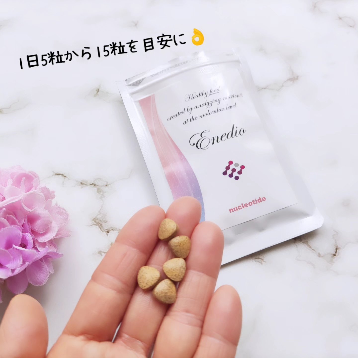 美容や健康に気をつけたい方にオススメのサプリ 「Enedio ヌクレオチド」 の紹介です。 抗酸化数値はあずきの36倍(65,000 SOD/g)もあるとのこと!サビない身体になれそう。 私は、5粒ずつ3週間ほど飲みました。なんだか身体がすっきりしているような気がします! 更年期の不調も感じるので、身体には気をつけていきたいです。