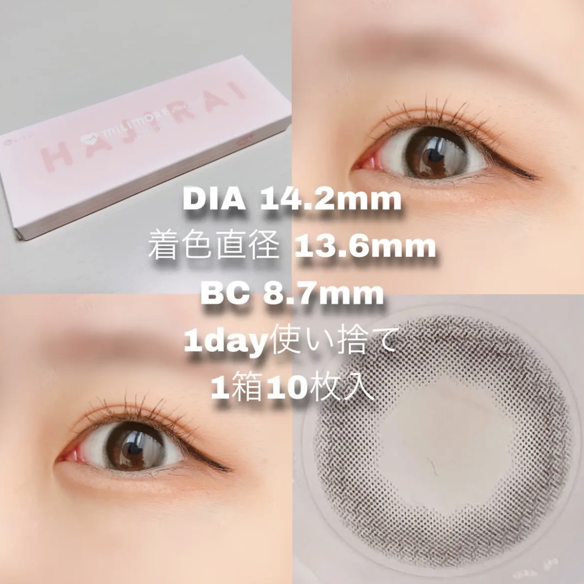 小さくても盛れる⟡.·ミリモア全8色レビュー💎🩶⟡エバーカラーワンデーミリモア全8色/各¥1,694(税込)▫️𝗟𝗘𝗡𝗦𝗦𝗣𝗘𝗖DIA:14.2mmG.DIA:13.1mm~13.6mmBC:8.7mm度数:±0.00~-8.00含水率:60...