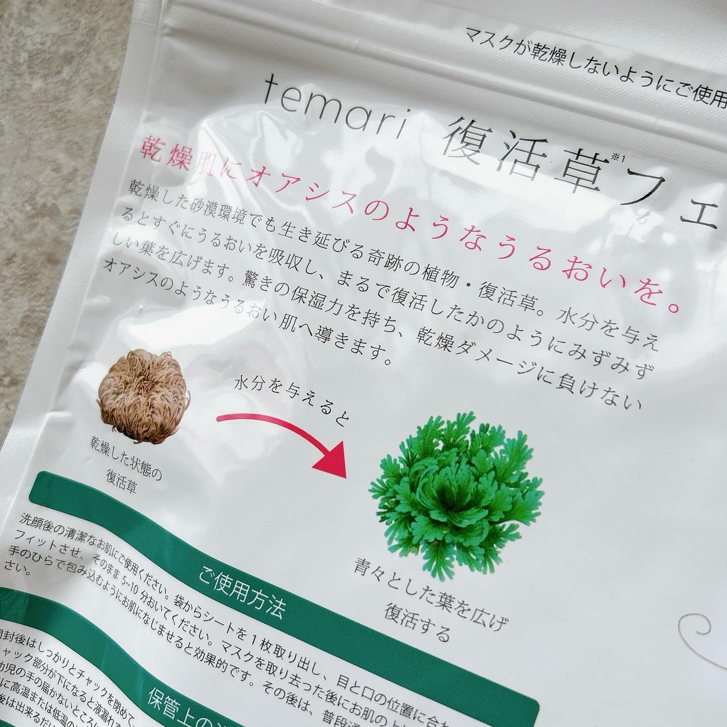 - 乾燥した砂漠環境でも生き延び、驚きの保湿力を持つ 奇跡の植物「復活草*」のエキスを贅沢に配合した大容量フェイスマスクシート。 乾燥ダメージをケアしてオアシスのようなお肌へ導きます。 さらに美容保湿成分を贅沢配合。 CICA(ツボクサエキス)/セラミド5種/植物エキス13種 ヒアルロン酸Na/水溶性プロテオグリカン/水溶性コラーゲン うるおいで満たして、角質層から輝くようなハリつや水光肌に。 *テマリカタヒバ葉/茎エキス(保湿成分)