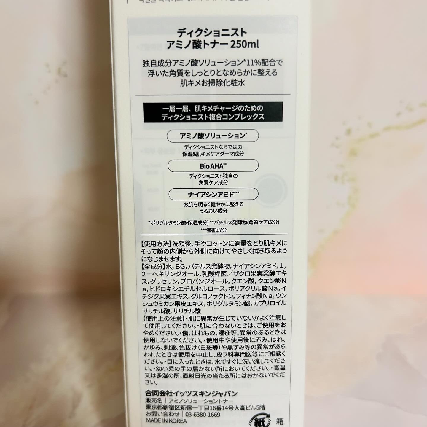 独自の高保湿成分アミノソリューション11%, 角質を改善する成分BioAHA 3%、ナイアシンアミドを配合。 水分感たっぷりでみずみずしい見た目ですが、手に取るとほんの少しとろみがあるように感じられます。肌馴染みが良く、ベタつかずさっぱりとしている使い心地。 洗顔後、手で直接お肌に馴染ませても良いですが、コットンで滑らかに拭き取ると角質ケアとしても使えます。