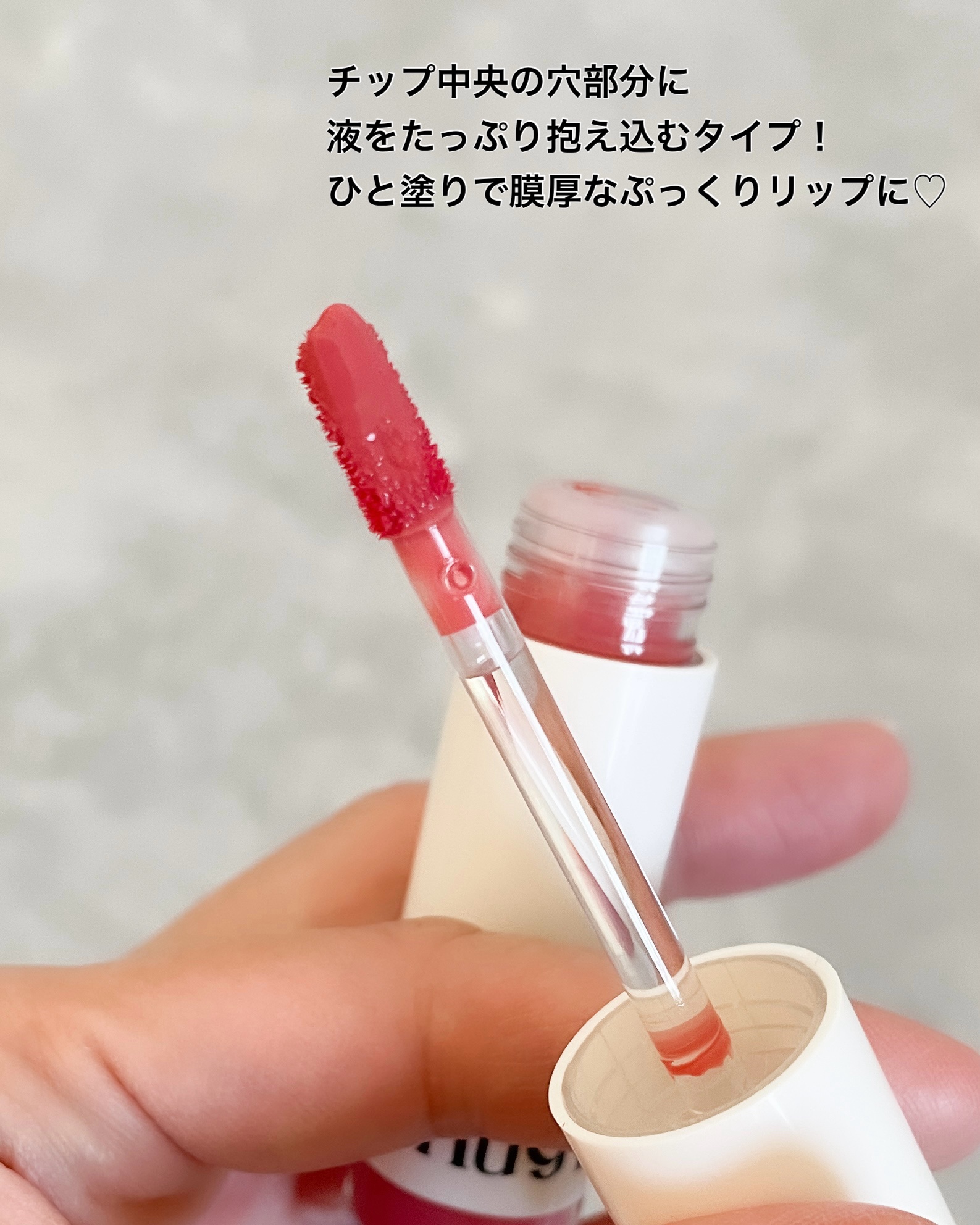- ぽっと染まった唇、ぎゅっとハグして離さない。つやつやジェル膜がつけたての色を守り、きれい発色つづくプランプ*リップ *メイク効果
