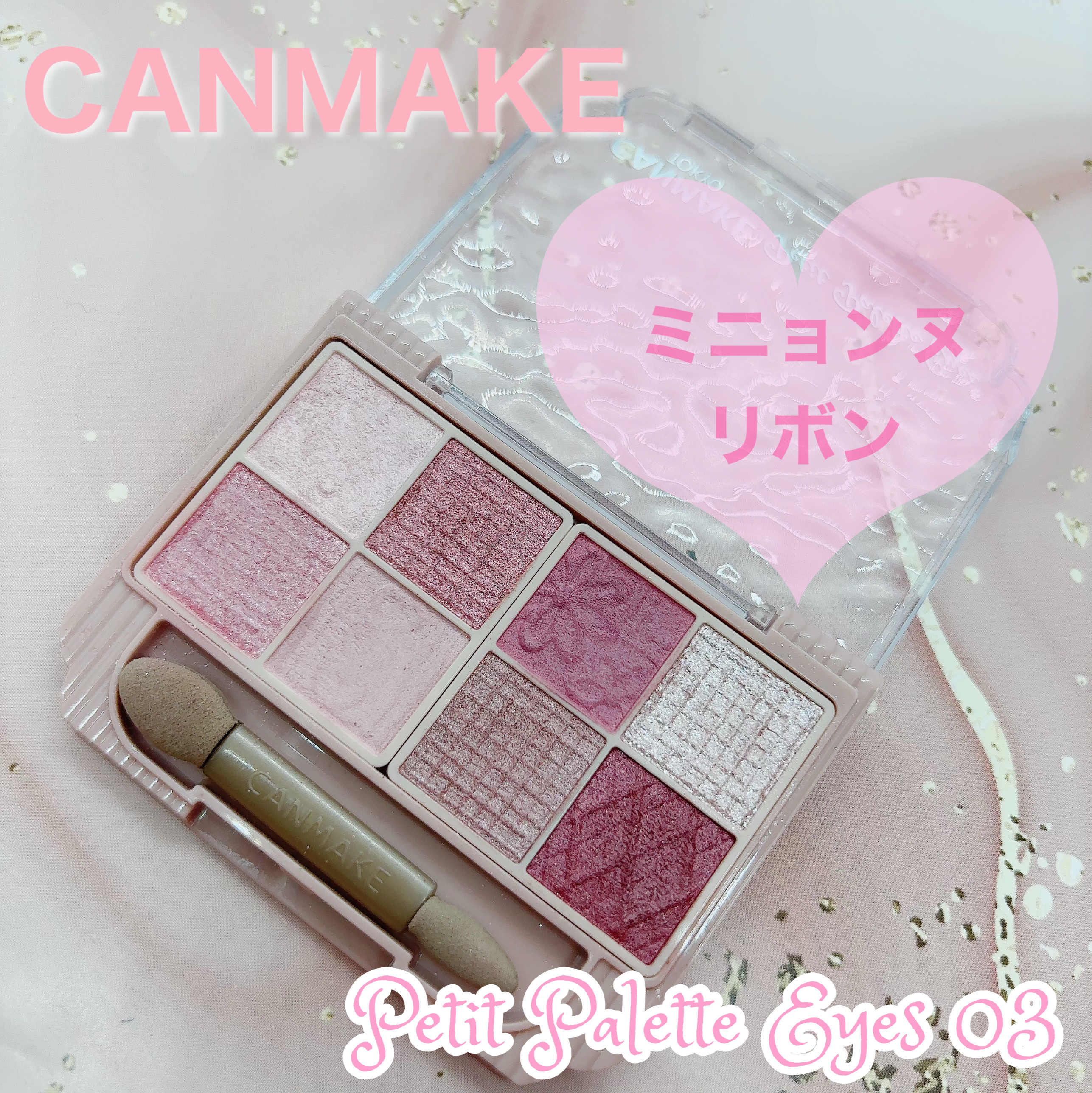 キャンメイクのプティパレットアイズが可愛すぎた🥺💗 03 ミニョンヌリボンはピンクがギュッと詰まったパレットで、ほんのり甘めなメイクにぴったり🎀✨ キラキラ感も上品さがあって、これで1000円ちょいなのはさすがすぎる👏