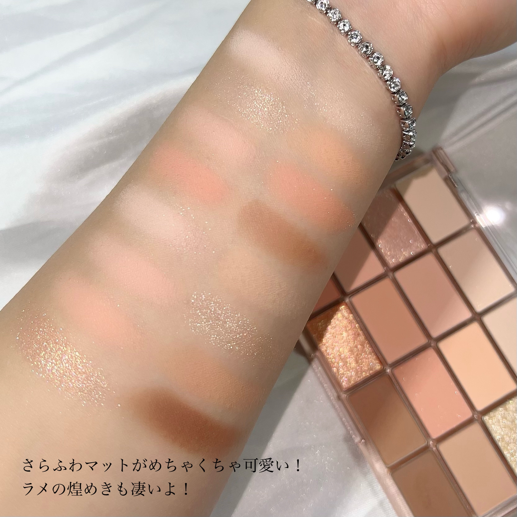 - 多彩なパーソナルカラーを基盤に作られたソフトブラーリングアイパレットで、16色を入れる事で、パレット1つでどんなメイクにもチャレンジできる形状が細長く持ち運びにも便利なパレット。 目元にやさしい使用感で広がり粉の飛び散りが少なく、しっかりと密着し染み込むように自然に馴染むテクスチャーが特徴。