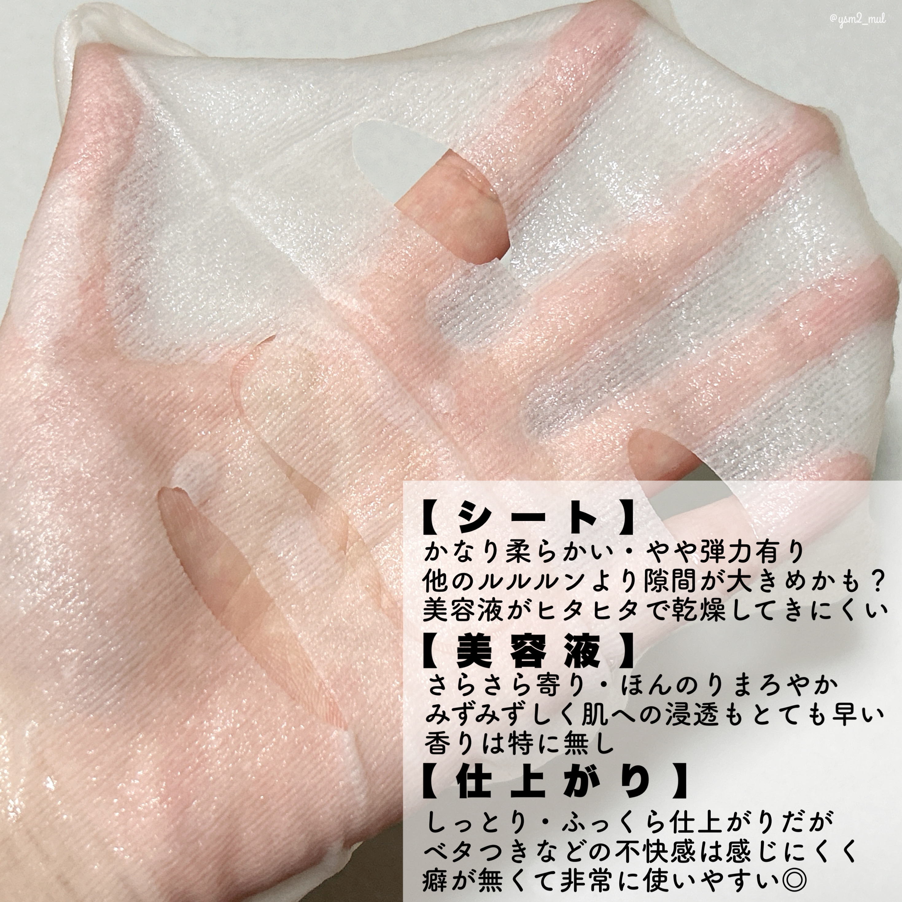 | やわらかい感触のシート♪ たっぷりの化粧水が含まれているのが分かるくらい うるうるしています😊 | 詳細を見る | |