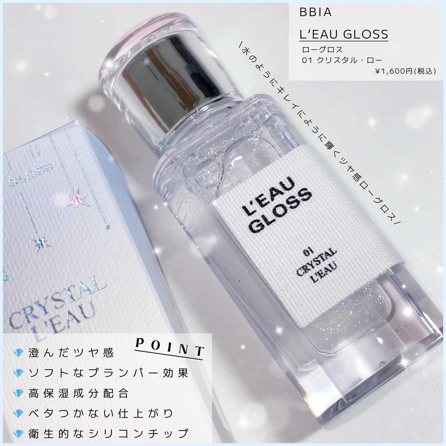 - 水のようにきれいに輝くツヤ感のローグロス。 - 高光沢のオイルと様々なオイルの組み合わせで透明で澄んだツヤを表現 - 水のように快適で軽いテクスチャーなのに、唇にしっかり密着するベタつかない使い心地 *衛生的なシリコンチップ使用 - プランパー効果で爽やかな使用感とぷっくりとした唇を演出 *ホホバオイル、コラーゲン、ヒアルロン酸含有で唇を保湿(原料的特性に限る)