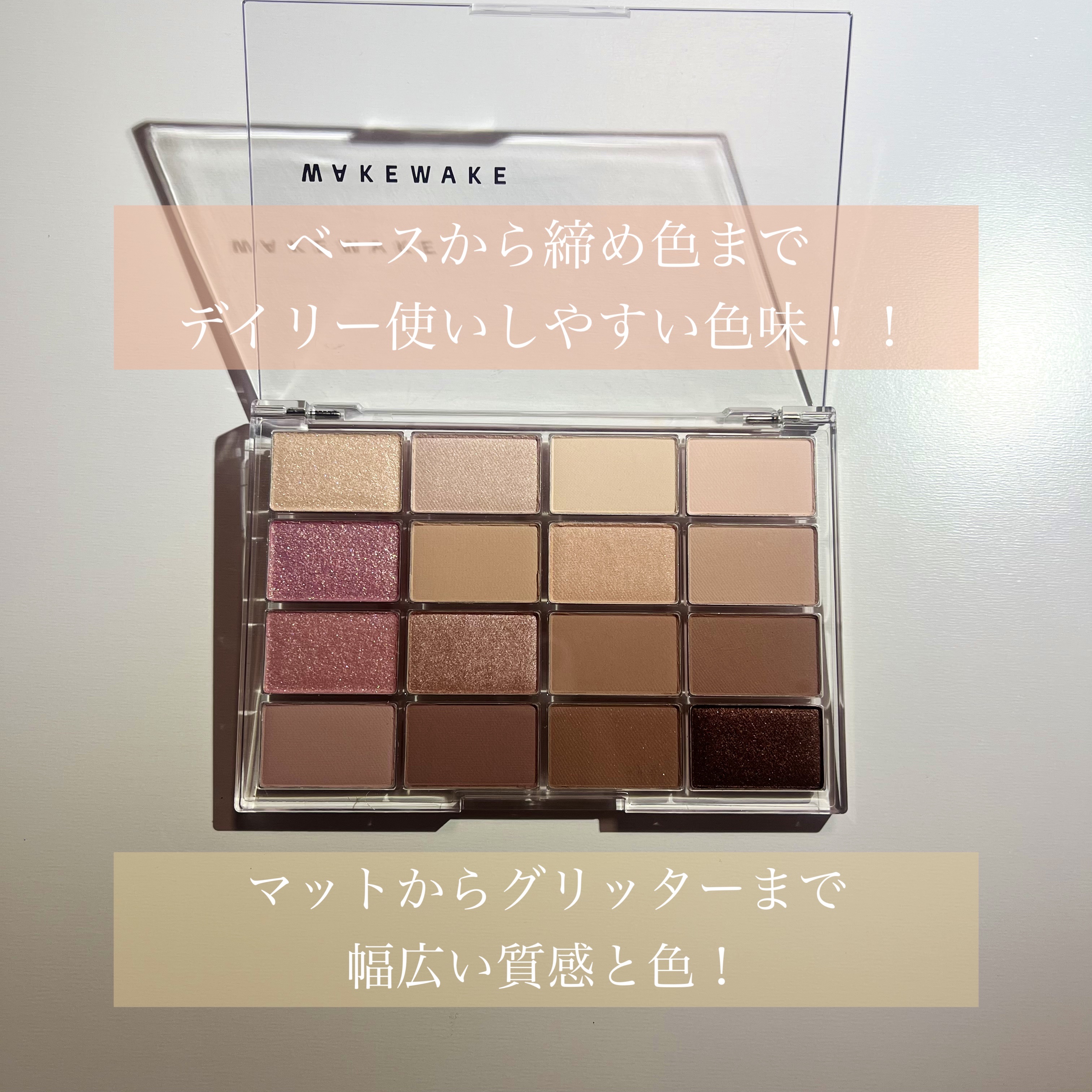 持ってて損なし!!毎日メイクに使える!万能アイシャドウパレット✨#WAKEMAKE#ソフトブラーリングアイパレット02ライブリーブラーリング¥3,960(税込)16色入りカラー名↓・シースルー・スナグ・ボーン・クラウド・フェスティバル・レイニ...