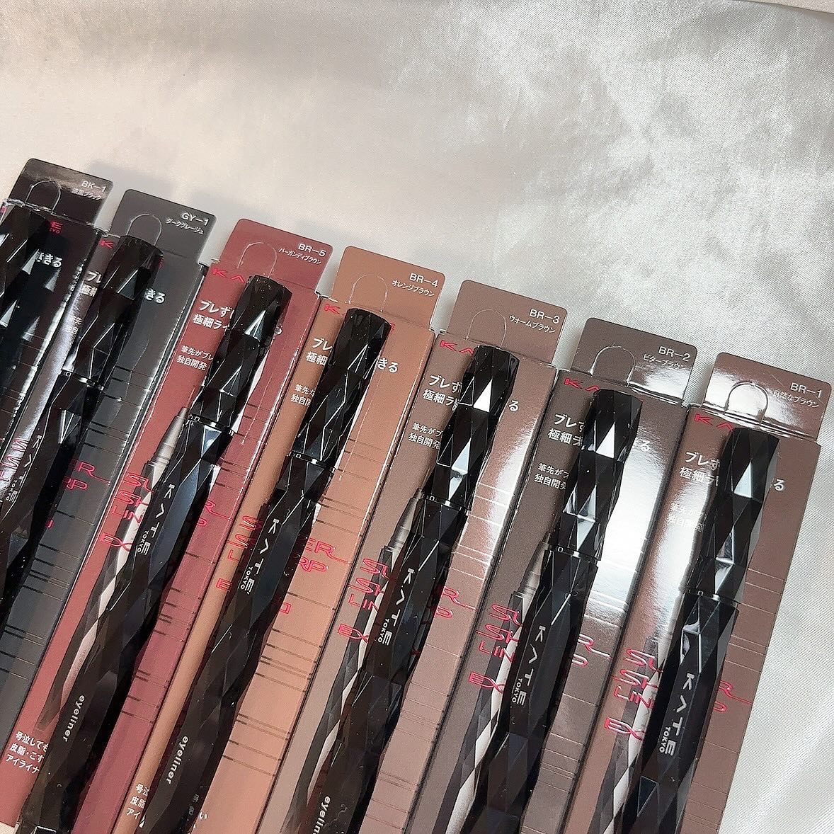 進化した筆は、細さも描きやすさも叶える スーパーシャープライナーEX4.0誕生🎉 極細ラインを安定して描けるケイト独自開発の筆でブレにくく目尻のラインが描きやすい!! 真っ黒じゃないから、自然と肌馴染み良く、ナチュラルな目元のメイクにも合わせやすい❤️