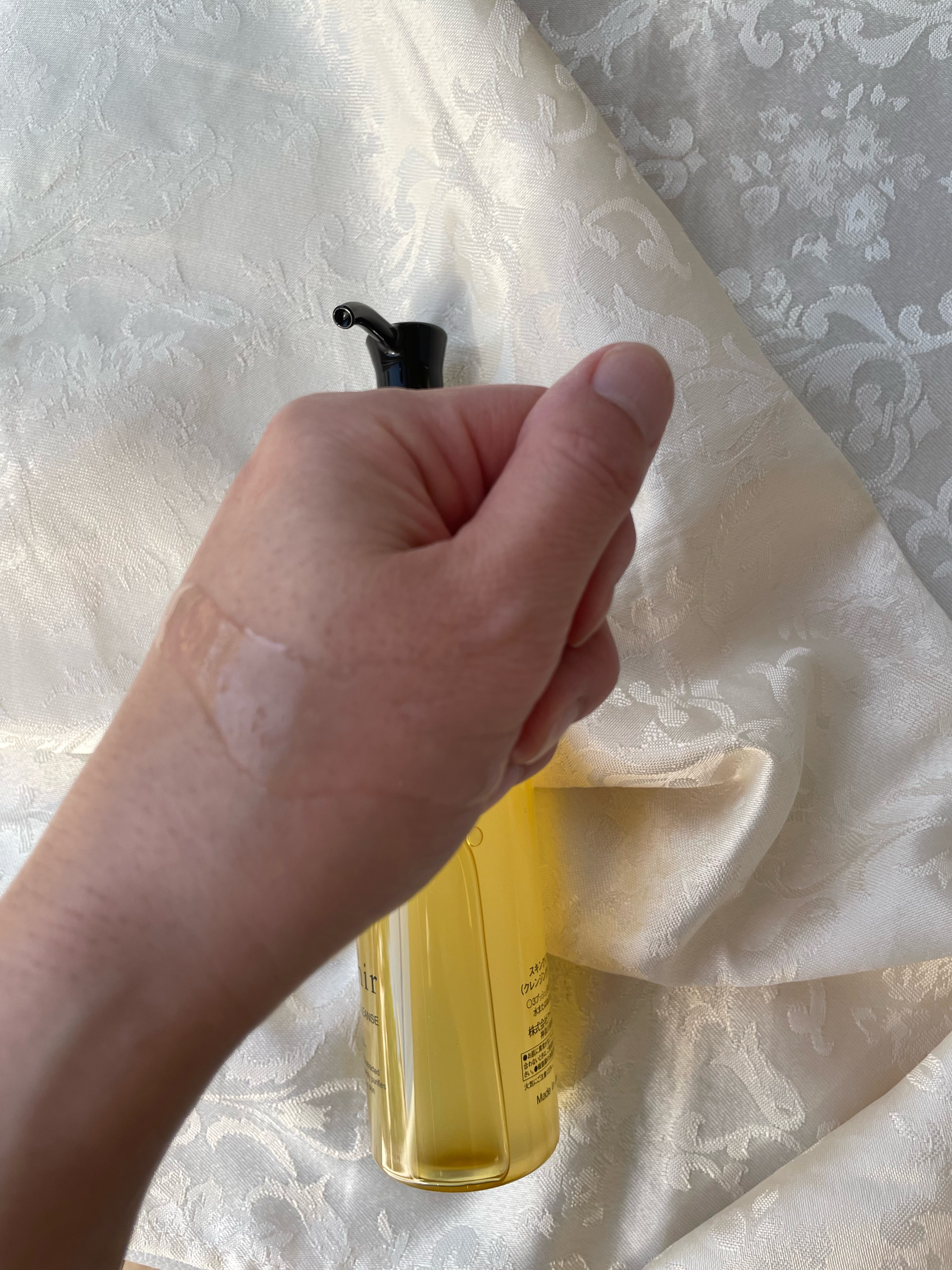 厚みのあるオイルで、スルスルと伸びます。 ウォータープルーフのメイクもしっかり素早く浮き上がらせる「スピーディメルティング処方」が、肌に負担なくメイクを浮き上がらせてくれます。 香りは柑橘系。 レモングラスを中心に天然精油がブレンドされていて爽やかな香りです。 ダブル洗顔不要。 濡れた手やお風呂場でも使えます。お湯でオフできるフィルムタイプのメイク品も、オイルでしっかりオフできるよう、クレンジング力がアップしたそうですよ👌