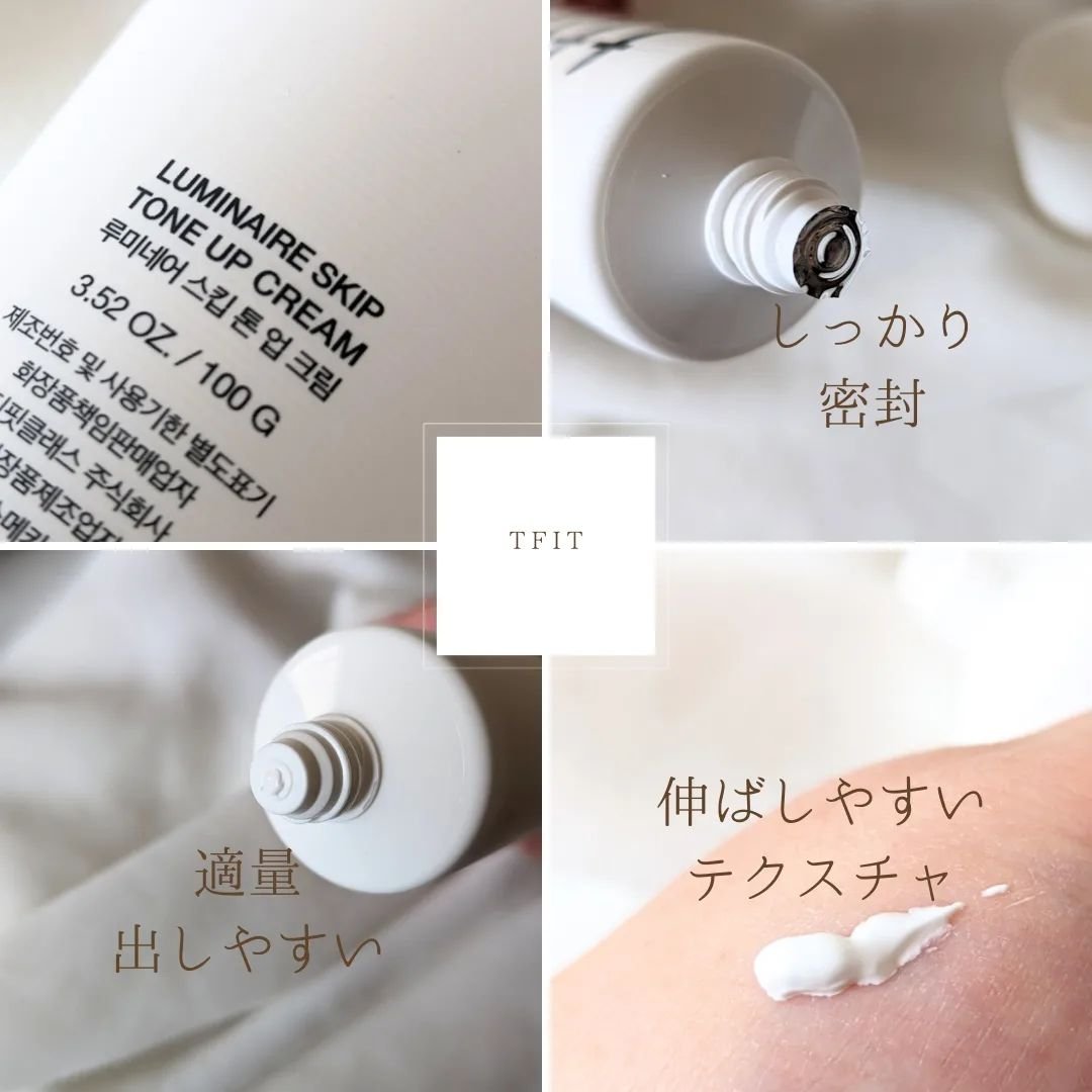 #PR#TFITtfitルミネールスキップトーンアップクリームみずみずしく伸びるテクスチャーで、肌に馴染むと(?????)って頭が混乱するぐらいに、元々から白かった?って、透明感すら感じる仕上がりにびっくり😳100gの大容量なので、首や腕に惜...