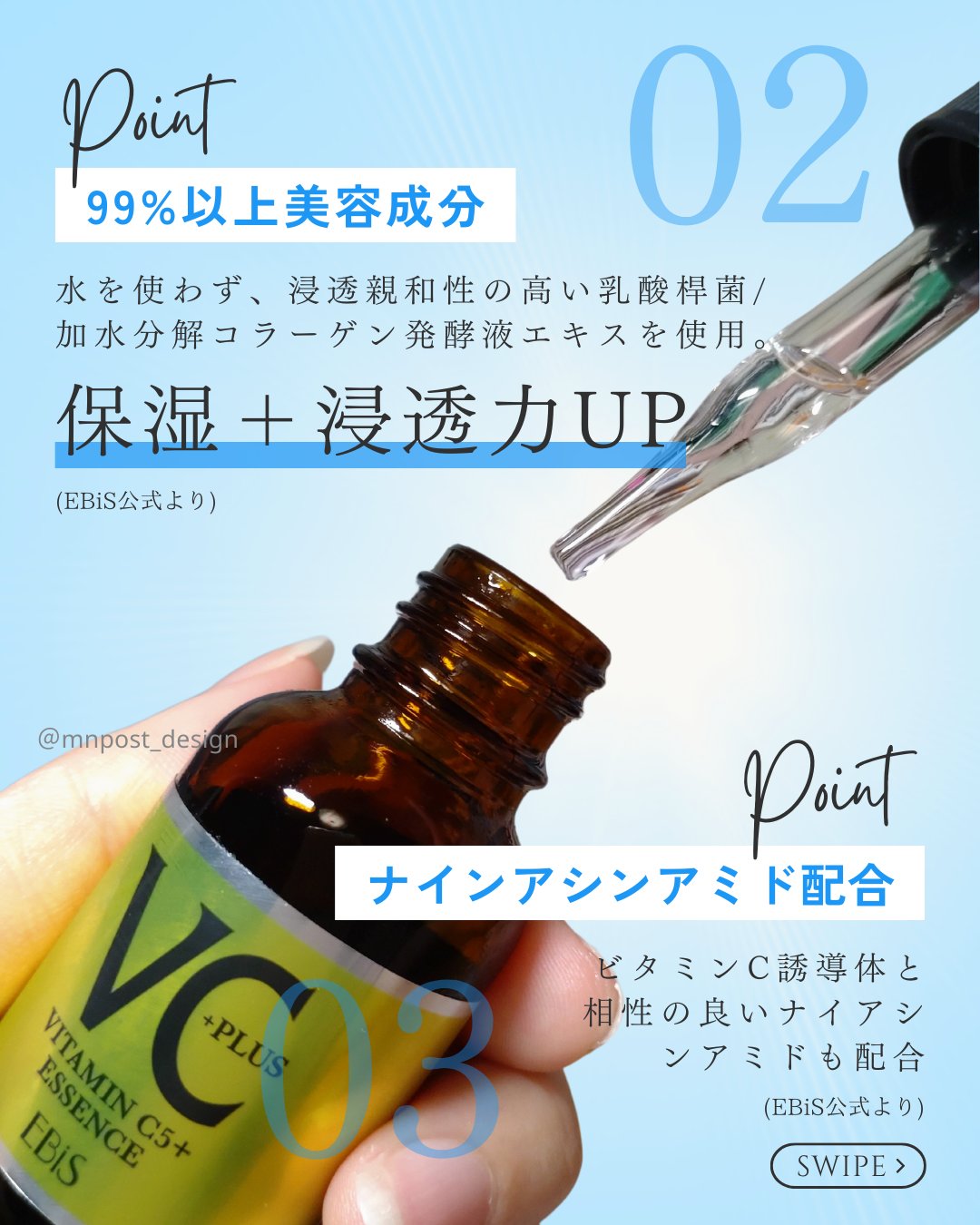 『LDKtheBeauty』で何度も1位に選ばれた大人気ビタミンC美容液『Cエッセンス』が『CエッセンスVC5PLUS』にリニューアルしたよ🍋私もずっと気になってた商品で、今回お試しさせていただきました🥰✨使ってみて驚いたのがすごくサラッとし...