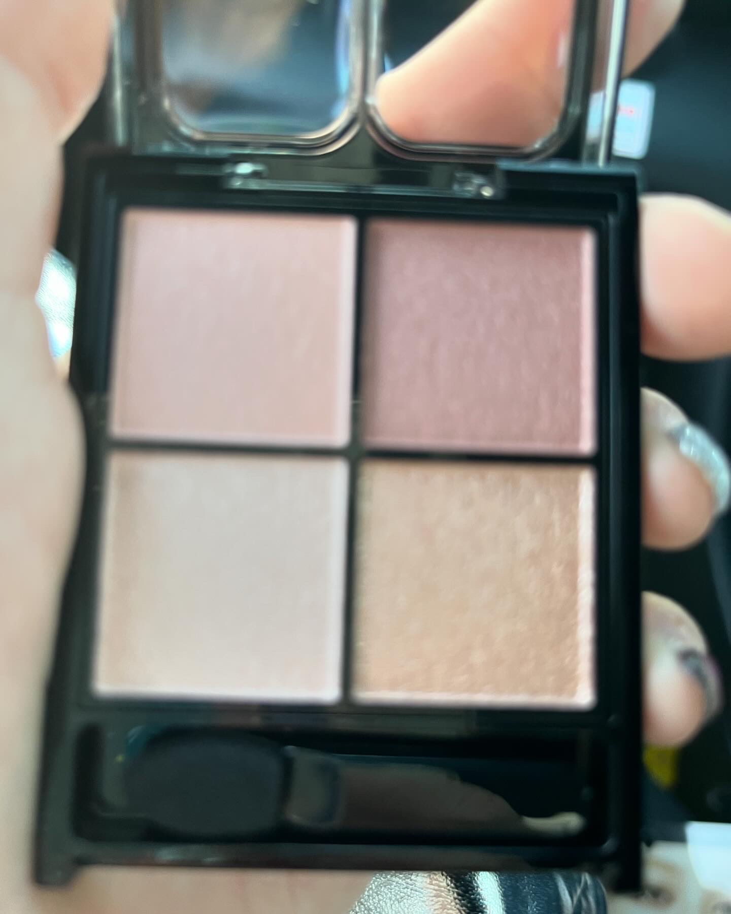 がま口みたいで可愛い( ´,,•ω•,,`)♡ メインとなる色が2色入ってるから使いやすいし、ラメも2色入ってます (๑╹ᆺ╹) 1番左の色だけ使い道分からないけど… アイラインの上から重ねたりしたらいいのかな笑