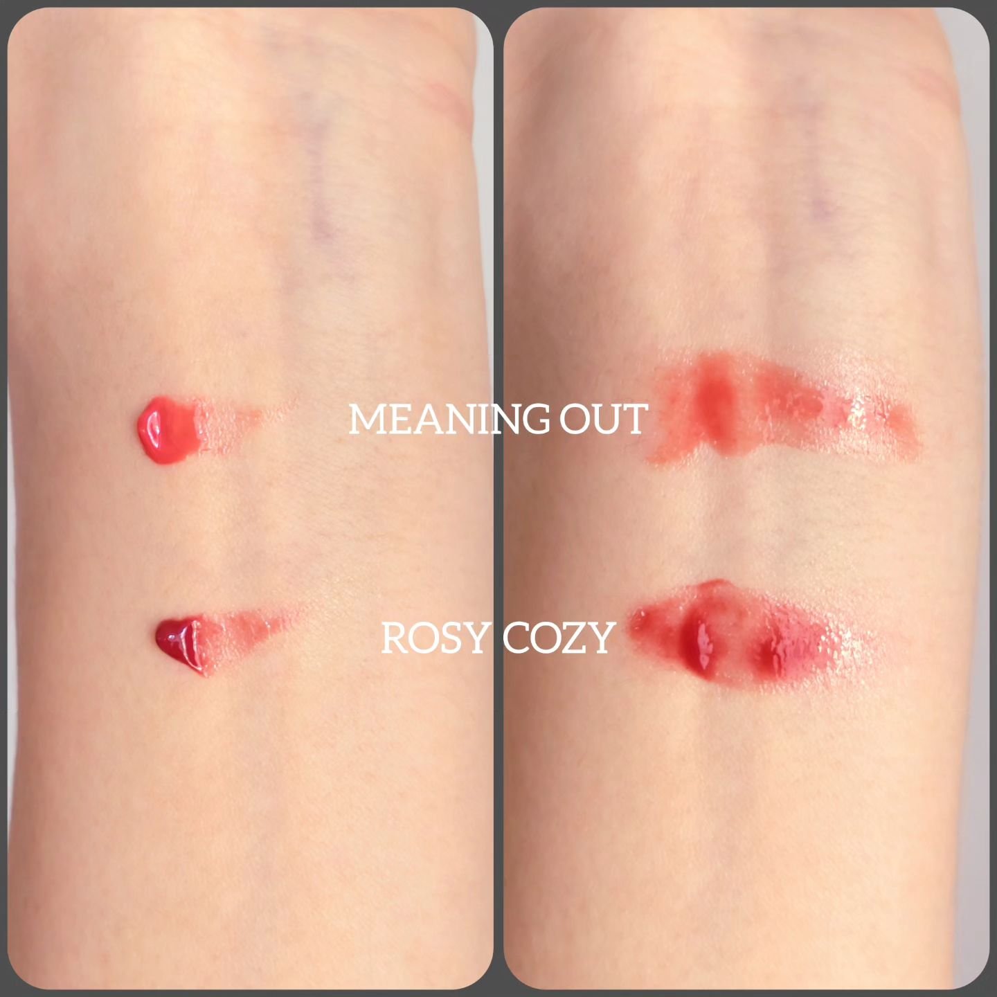果汁を絞ったような新鮮さとみずみずしさを感じられる発色の良いティントです 透け感があり唇に馴染みやすく色展開も豊富で私はモーブっぽい少し青みのある103ハミングとイエベ向けのブラウンベージュのような108ソルティを選びました つけたては水膜が張ったようなツルンとしたツヤが綺麗で唇の縦じわも少し目立たなくなります💋 上から保湿リップを塗っても色落ちすることなく、また塗って5分ほどでしっかり定着するので使いやすい✨ 103はイエベで唇のみ青みが入った私にはピッタリのMLBBの色味で普段使いに良さそう 108はやや深みのある赤に染まりしっかり目のアイメイクにも合わせやすいやや主張のあるカラーです