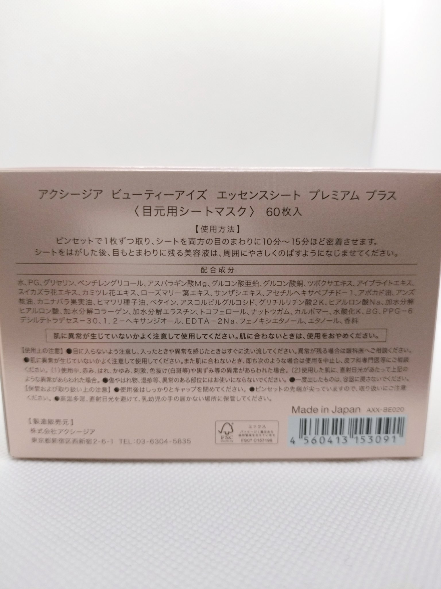 商品詳細情報AXXZIA ビューティーアイズ エッセンスシート プレミアム プラス