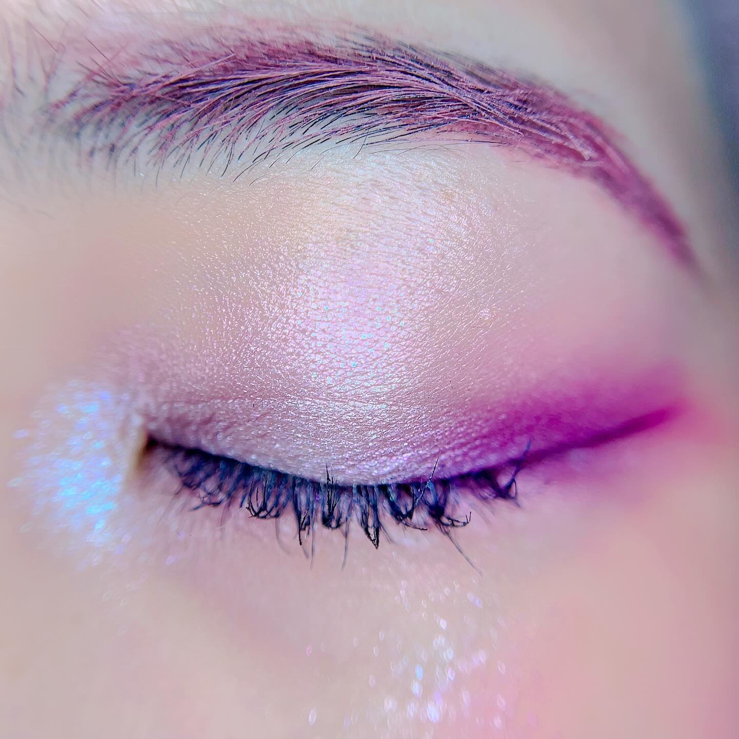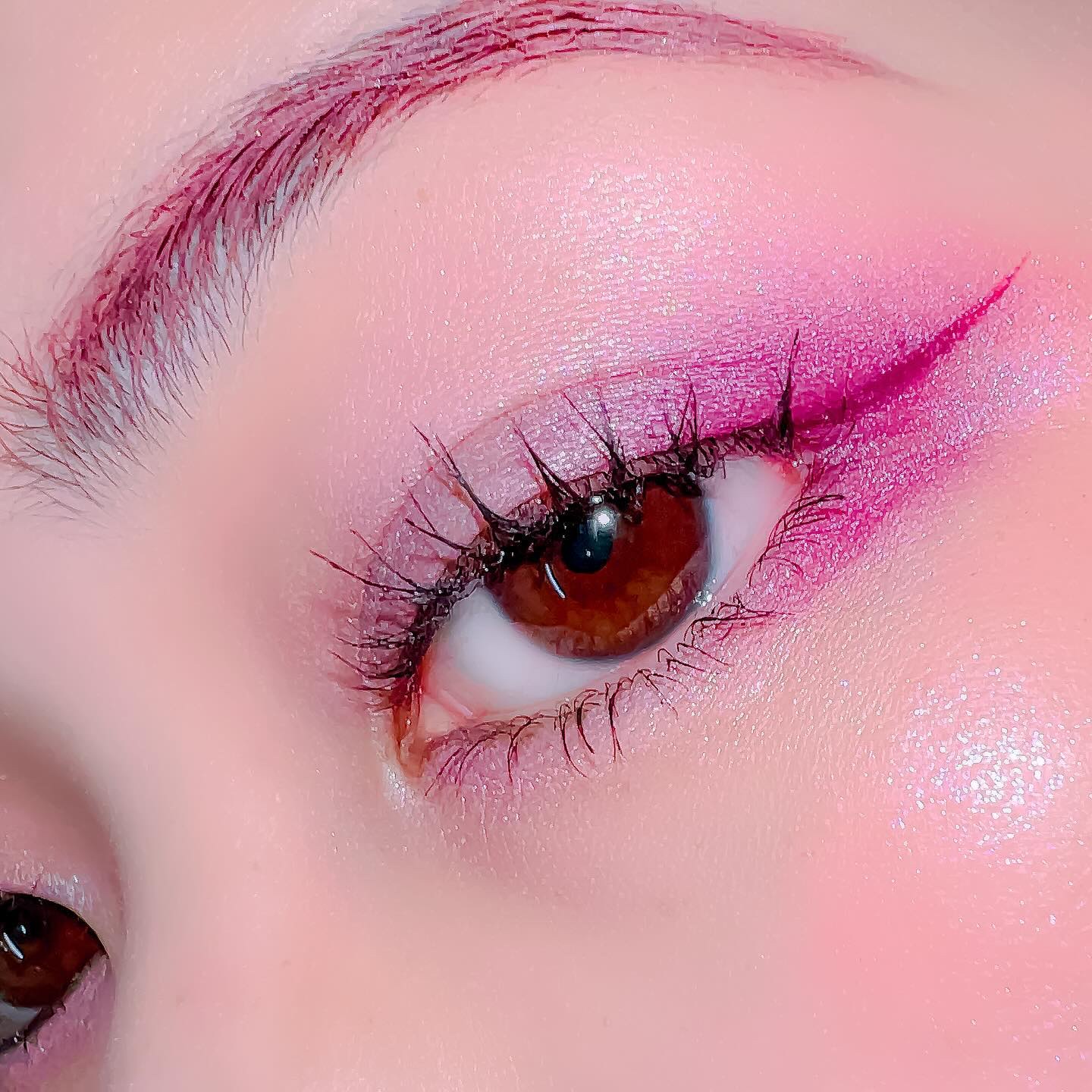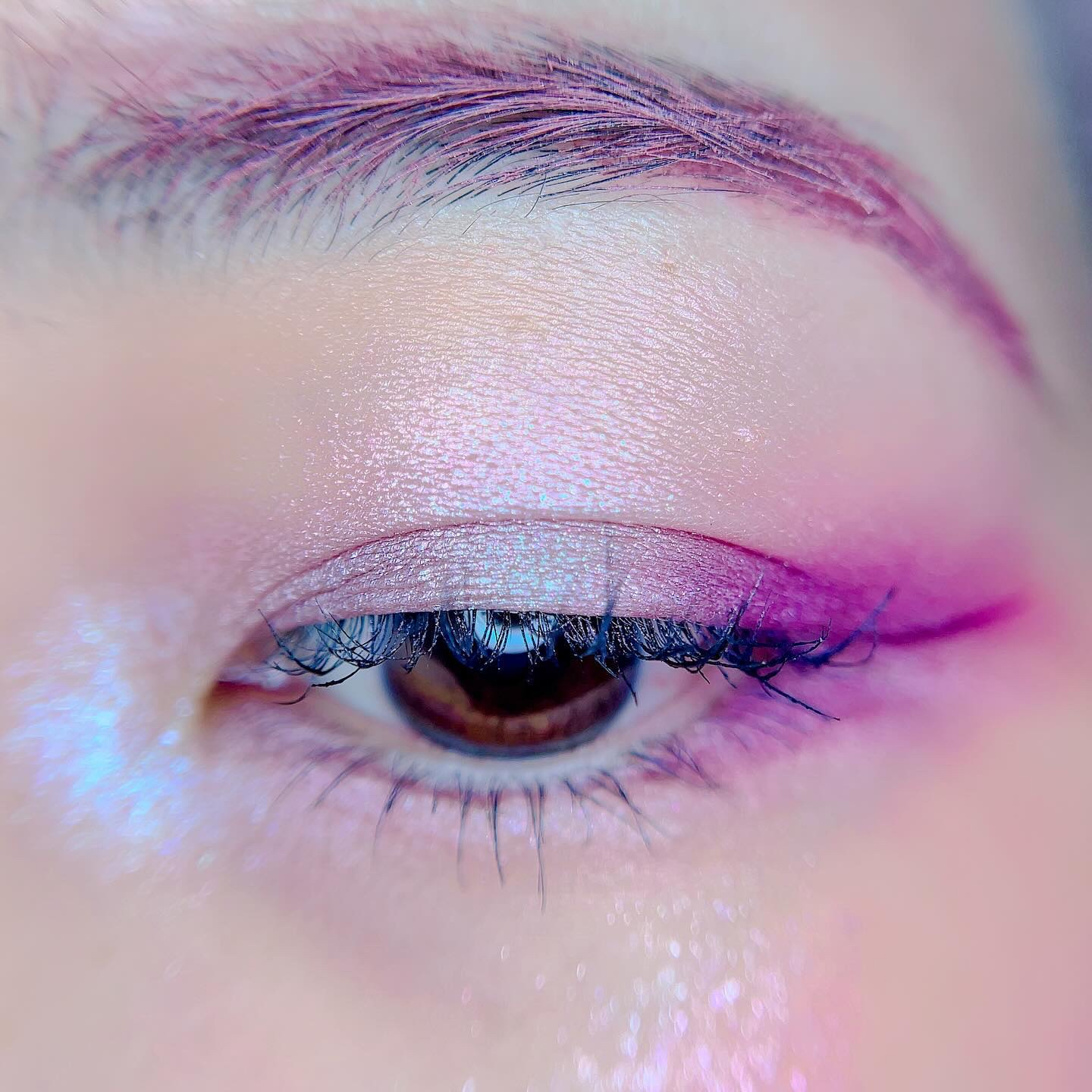 ピンクにグレージュも良いですね👌💗 今日は可愛らしい感じにしてみました💕 上下瞼黒目〜目頭側にラメを塗ってキラキラさせております🤩 目尻はマットのピンクを濃いめに重ねて💗 グレージュのアイライナーと相性◎