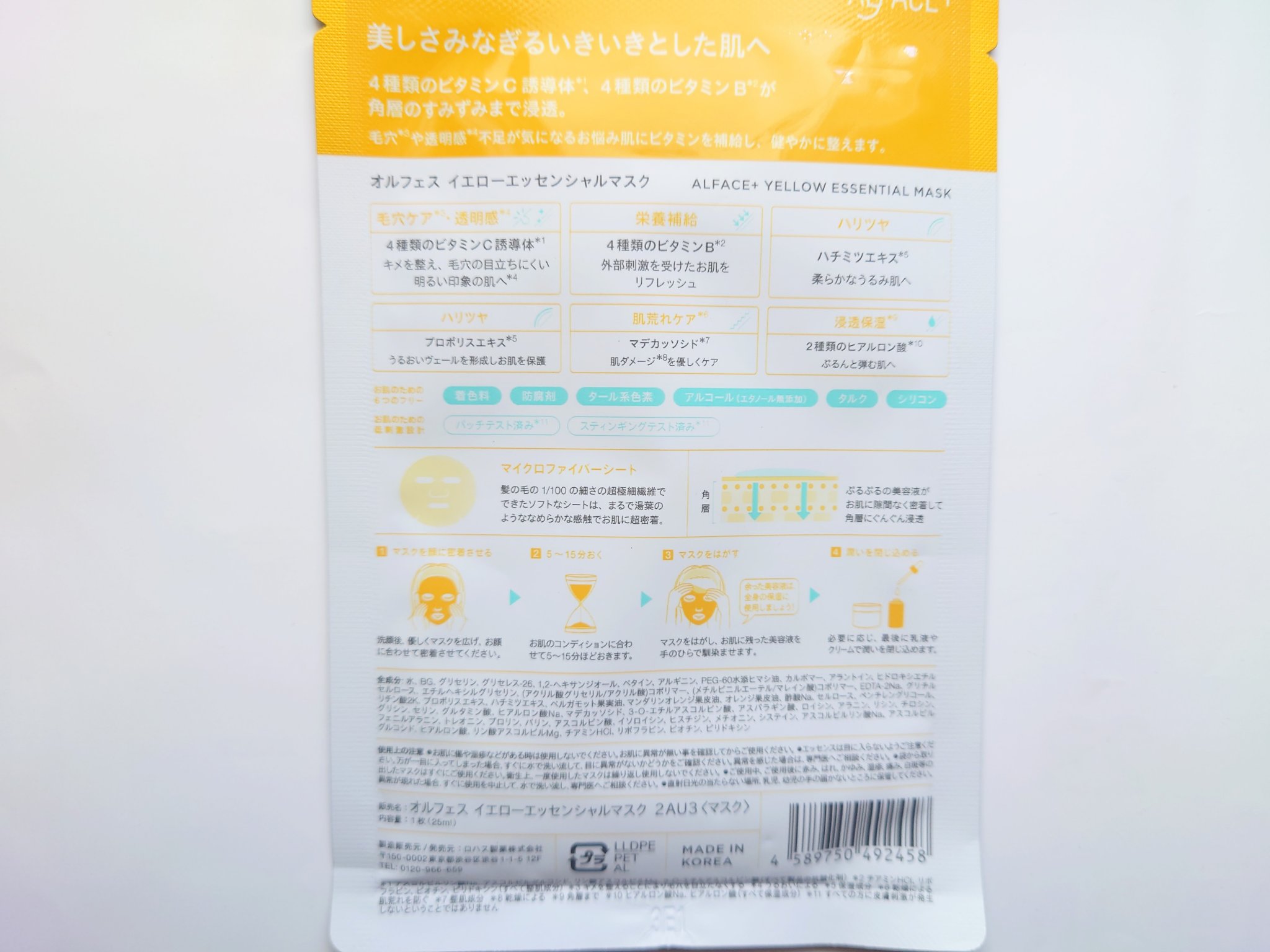 ALFACE+ オルフェス イエローエッセンシャルマスク | 275円 |