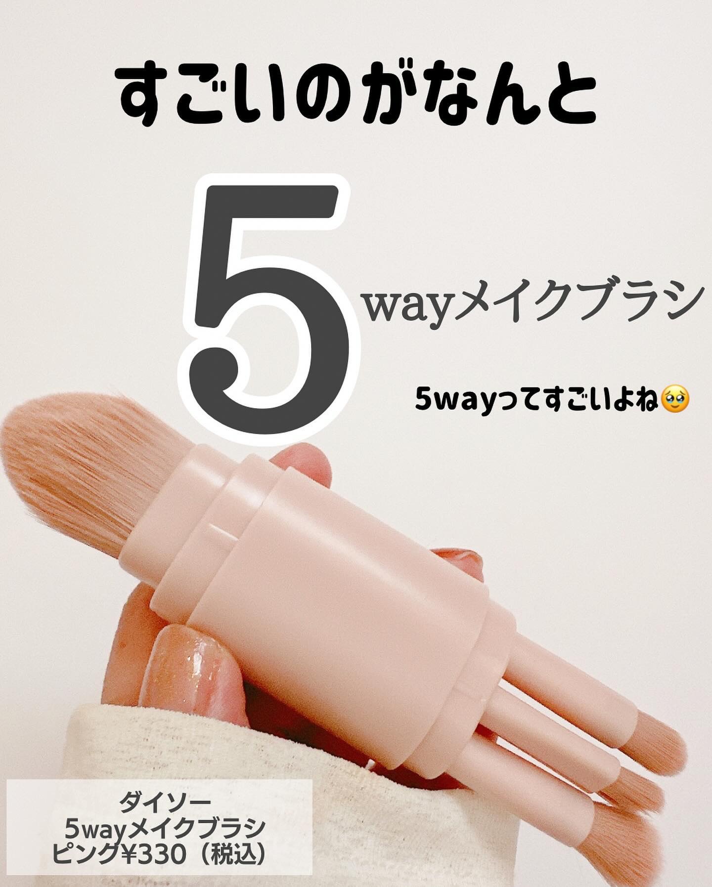 \5種類のブラシがセットに!/【DAISO5Wayメイクブラシ】☑️¥330これ1つで5種類のブラシヘッドが使えるメイクブラシセット。ブラックとピンクの2色展開で、こちらはピンクカラー。・フェイスブラシ(チーク・フェイスパウダー用・リキッドフ...