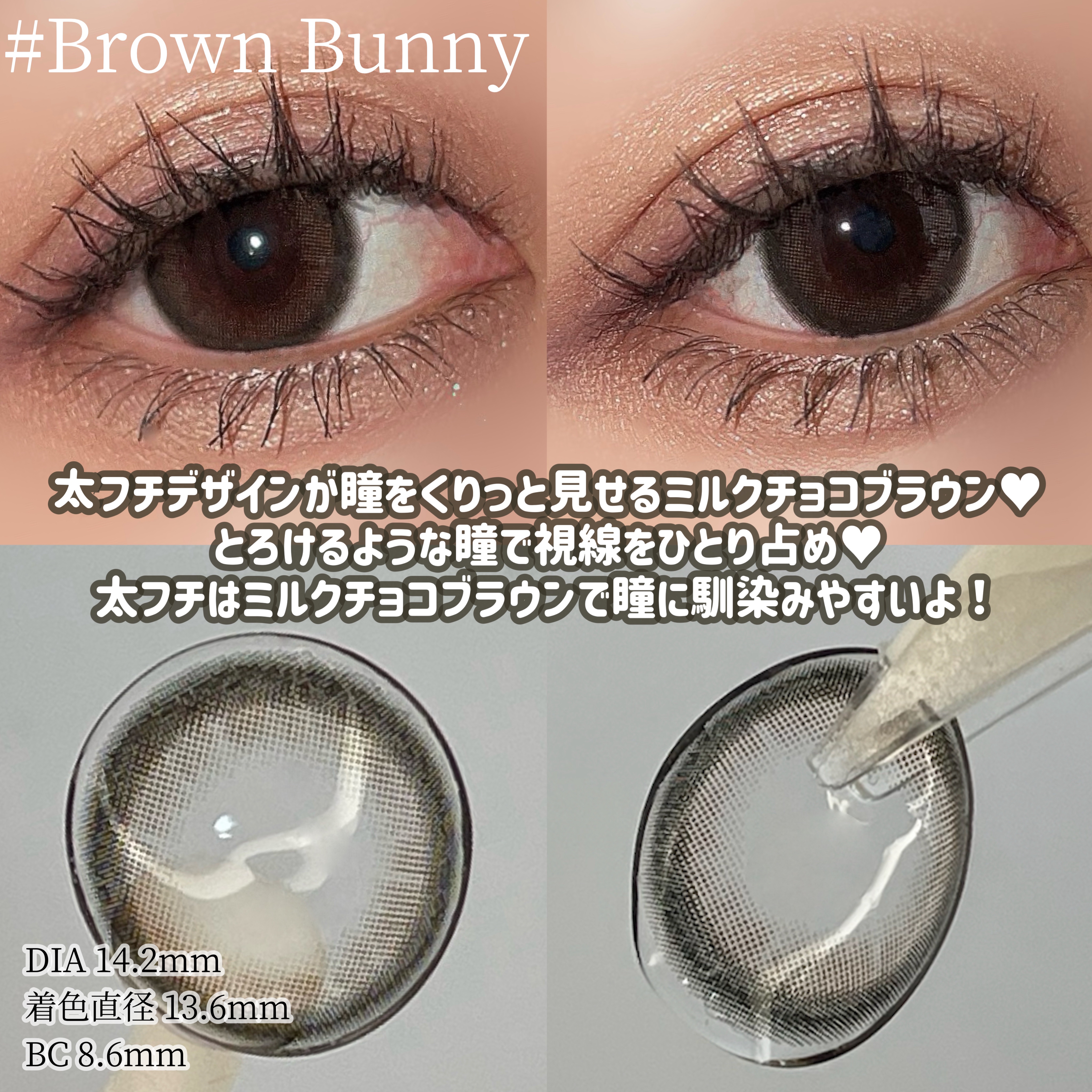 - ※2025年6月以降、商品パッケージ裏面・側面の一部表記を変更いたします。尚、これにかかる商品の交換・返品は承っておりません さりげなくいつもと違う自分をアピールしたい。 そんな女の子たちにいつまでも「いま欲しい!」と思ってもらえるレンズを目指してデザインしました。 落ち着きすぎず、明るすぎない、ナチュラルサイズで目になじみながら発色を感じられるデザインをそろえています。 カラーコンタクトレンズの不適正使用による眼障害の危険性等などがあります。 ●コンタクトレンズは高度管理医療機器です。不十分な洗浄・消毒など不適切なケアや、長時間・交換期間を超えた装用により、アレルギー性結膜炎、角膜感染症、角膜潰瘍等の重篤な眼障害が発生する危険性があります ●ご使用前に取扱説明書を確認してください 使用上の留意事項 ●眼科医院等を受診してからお求めください ●眼に異常を感じたら直ちにレンズ使用を中止し、お近くの眼科等で診察を受けてください ●医師の指示にしたがってご使用ください ●コンタクトレンズを装用する場合、自覚症状がなくても、眼科医院等での定期検査を受けてください ●レンズに不具合がある場合は使用しないでください
