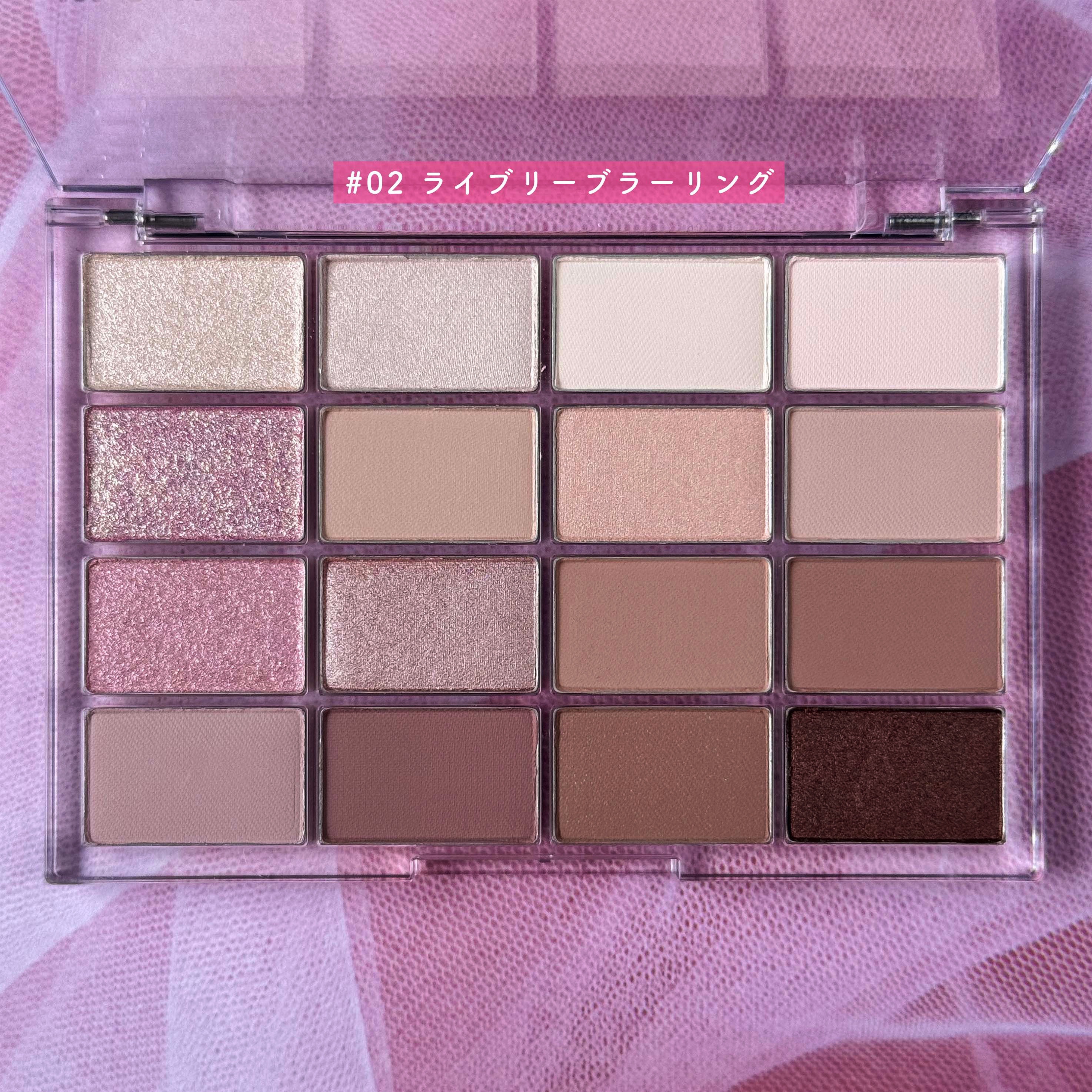 - 多彩なパーソナルカラーを基盤に作られたソフトブラーリングアイパレットで、16色を入れる事で、パレット1つでどんなメイクにもチャレンジできる形状が細長く持ち運びにも便利なパレット。 目元にやさしい使用感で広がり粉の飛び散りが少なく、しっかりと密着し染み込むように自然に馴染むテクスチャーが特徴。