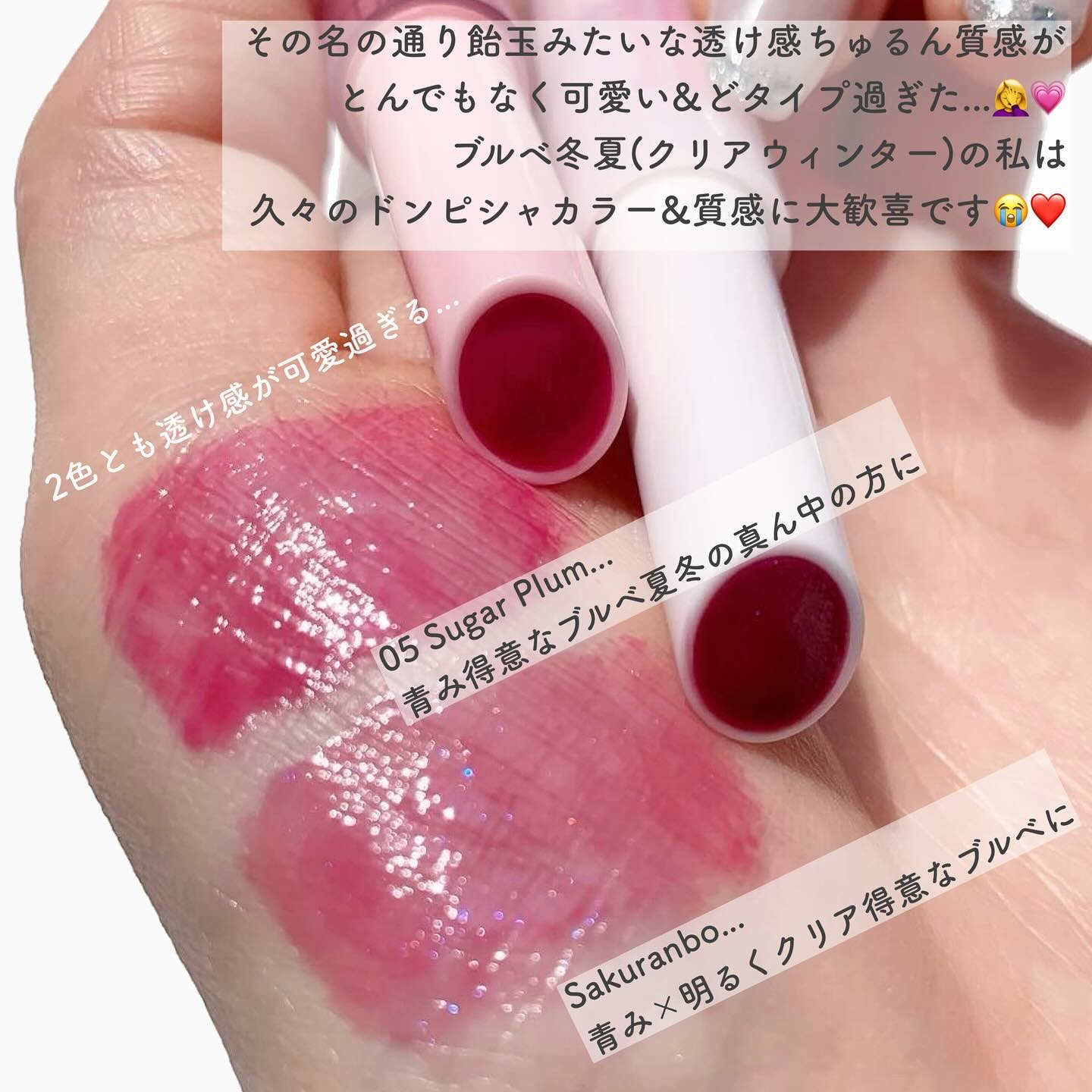 ティントで落ちにくい、ツヤティントリップ🩷 いちごシロップの香りがします🍓 鮮やかなベリーピンクのくすみのない澄んだカラー🩷 ぱっと華やかな印象になります! ブルーベース冬、夏の方におすすめ✨ 自分の似合うものを知って自分の魅力に気づいてみませんか?